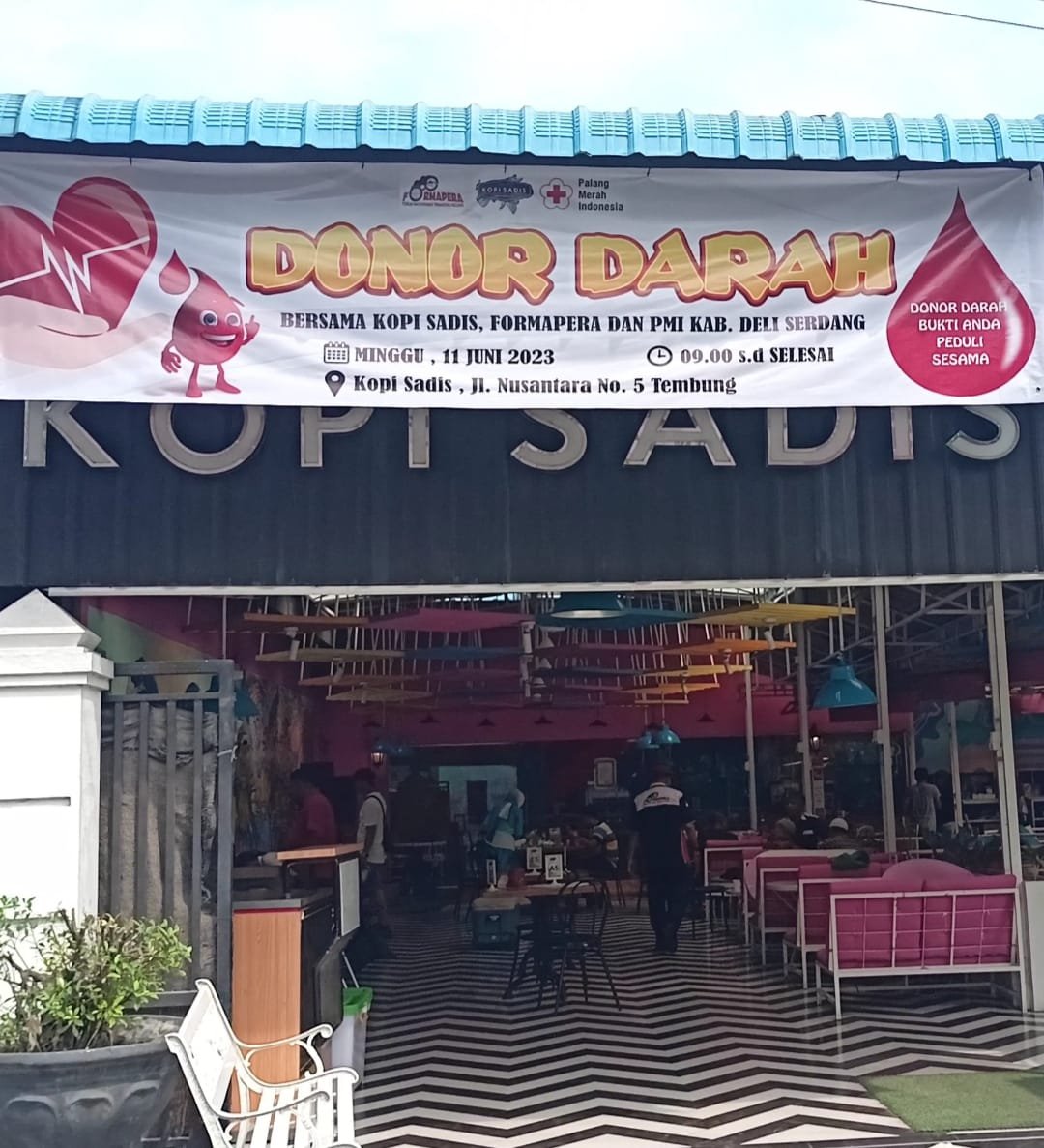 Kegiatan Sosial Donor Darah Yang di laksanakan oleh penyelenggara Kopi Sadis ,LSM FORMAPERA, dan PMI Deli Serdang Pada hari Minggu Pagi 11 Juni 2023 yang bertempat di lokasi kafe Sadis di kecamatan Percut Seituan