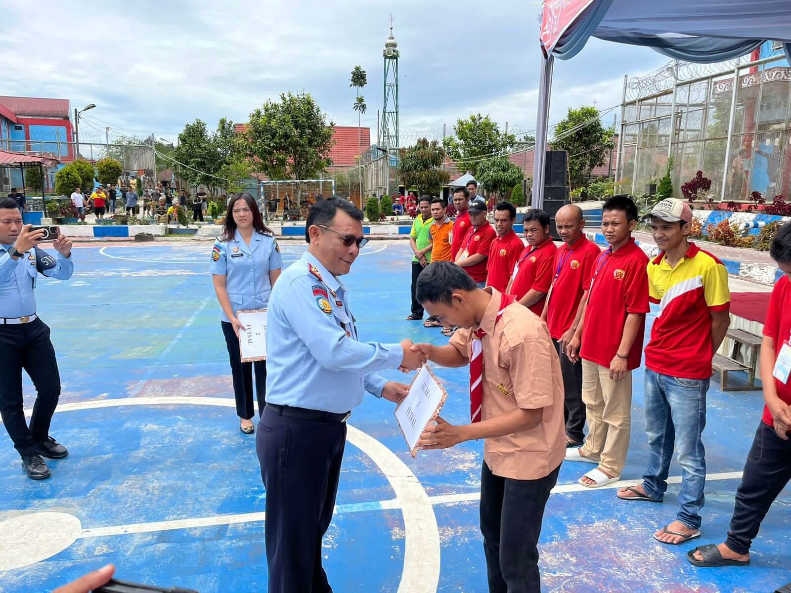 Usai pemotongan dan pembagian nasi tumpeng, Kalapas juga memberikan hadiah kepada pemenang lomba futsal, tenis meja, bulu tangkis,
