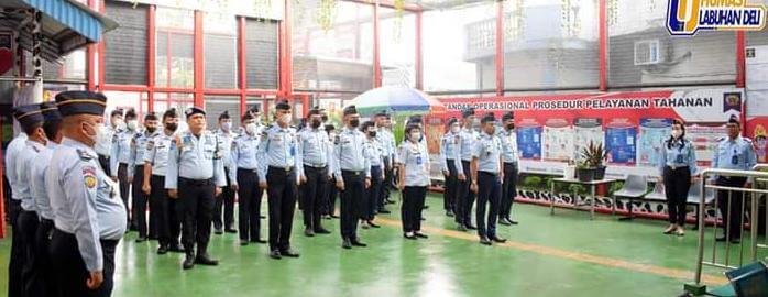 KEPALA RUTAN LABUHAN DELI KANWIL KUMHAM SUMUT PIMPIN APEL PAGI PERDANA SELURUH JAJARAN