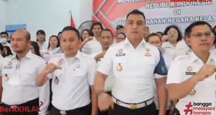 Kepala Rutan Tanjung gusta l Medan mengikuti kegiatan apel bersama jajaran kementerian Hukum dan HAM yang diikuti via zoom meetting, kepala Rutan beserta jajaran menyatakan komitmen untuk menyelenggarakan resolusi kementerian Hukum dan HAM tahun 2023 yang berbunyi “Wujudkan kementerian Hukum dan HAM semakin pasti dan berakhlak, dengan bekerja secara cepat, tepat, ikhlas dan hasilnya akuntabel ( 4/1/2023).