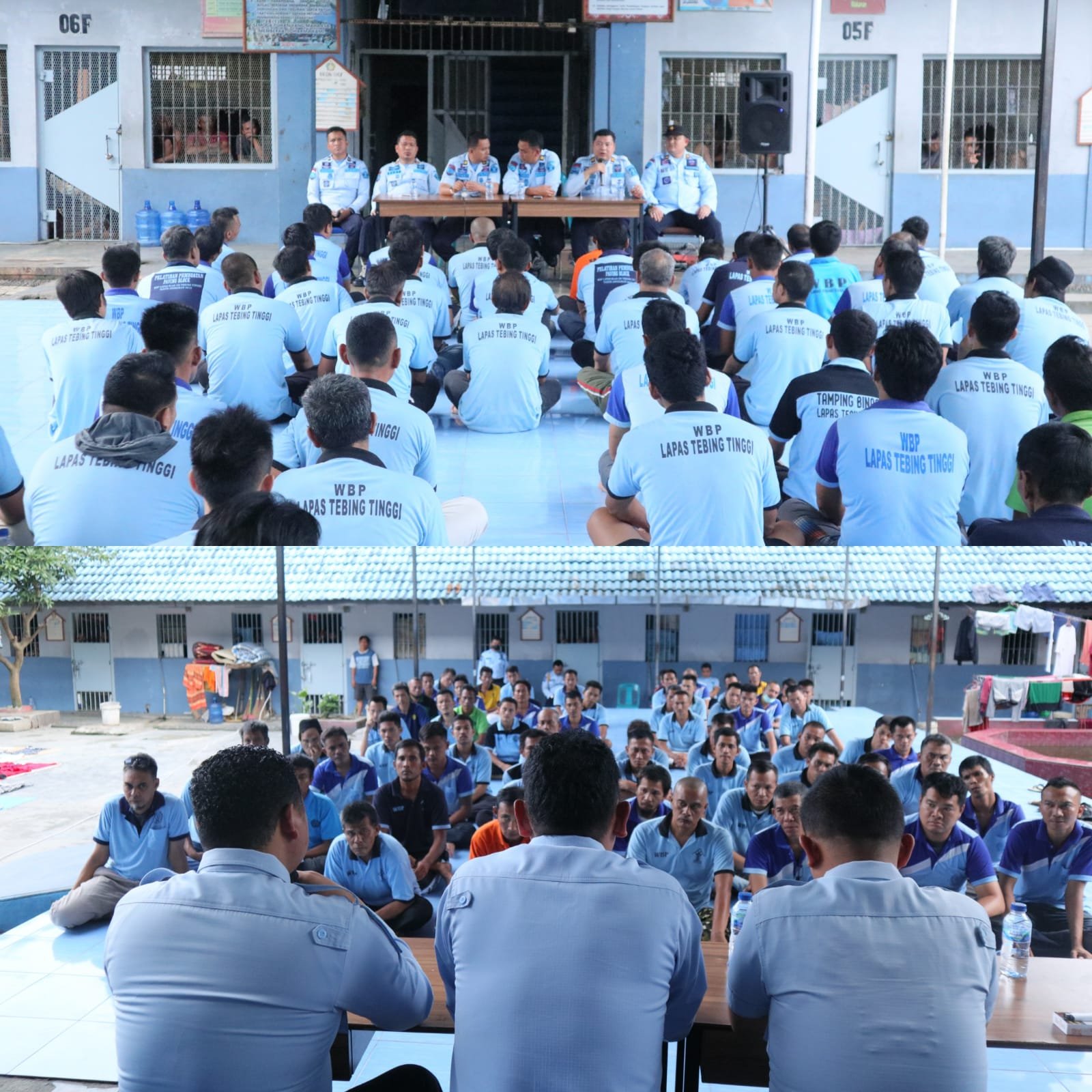 Bertempat di Lapas Tebing Tinggi tepatnya Halaman Blok EF wbp mengikuti kegiatan sosialisasi dan pengarahan tersebut. Sosialisasi tersebut dipimpin langsung oleh Kepala Kesatuan Pengamanan Lembaga Pemasyarakatan (Ka.KPLP) Fransisco Pandia., S.H. Turut hadir Kepala Seksi Administrasi Keamanan dan Ketertiban (Kasi Adm Kamtib) Febrianto Sirait, S.H, Kepala Seksi Bimbingan Narapidana/Anak dan Kegiatan Kerja (Kasi Binadik dan Giatja) Ronny S. Hutapea, A.Md.P., S.H., Kepala Sub Seksi Pelaporan dan Tata Tertib (Kasubsi. Portatib) Febi S. Lesmana, A.Md.P., S.H., dan Kepala Sub Seksi Registrasi & Bimkemas (Kasubsi. Registrasi & Bimkemas) Ziko Lukita, A.Md.P., S.H., M.H., Kepala Sub Seksi Keamanan (Kasubsi Keamanan) Rudy Purba, S.H beserta jajaran Pengamanan.