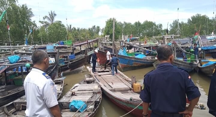 Kantor Kesyahbandaran dan Otoritas Pelabuhan (KSOP) Kelas III Kuala Tanjung bekerjasama dengan Dinas Perikanan dan Peternakan Kabupaten Batu Bara buka gerai nasional pelayanan dokumen dan sertifikasi kapal GT.5 (Pas Kecil) di Tempat Pelelangan Ikan (TPI), Desa Lalang, Kecamatan Medang Deras, Kabupaten Batu Bara, Provinsi Sumatera Utara, Selasa (04/10/2022).