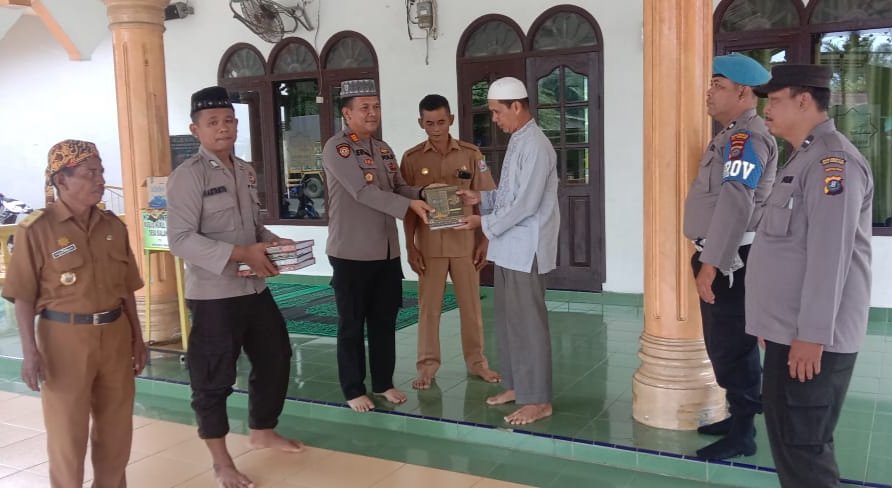 Menyambut bulan Suci Ramadhan 1443 H, Kapolsek Bangun Purba Polresta Deli Serdang AKP Herwin Bersama beberapa personil nya menyerahkan Kitab Suci Al-Qur’an di Tiga Desa Kecamatan Bangun Purba Kabupaten Deli Serdang. Rabu (21/03/2023).