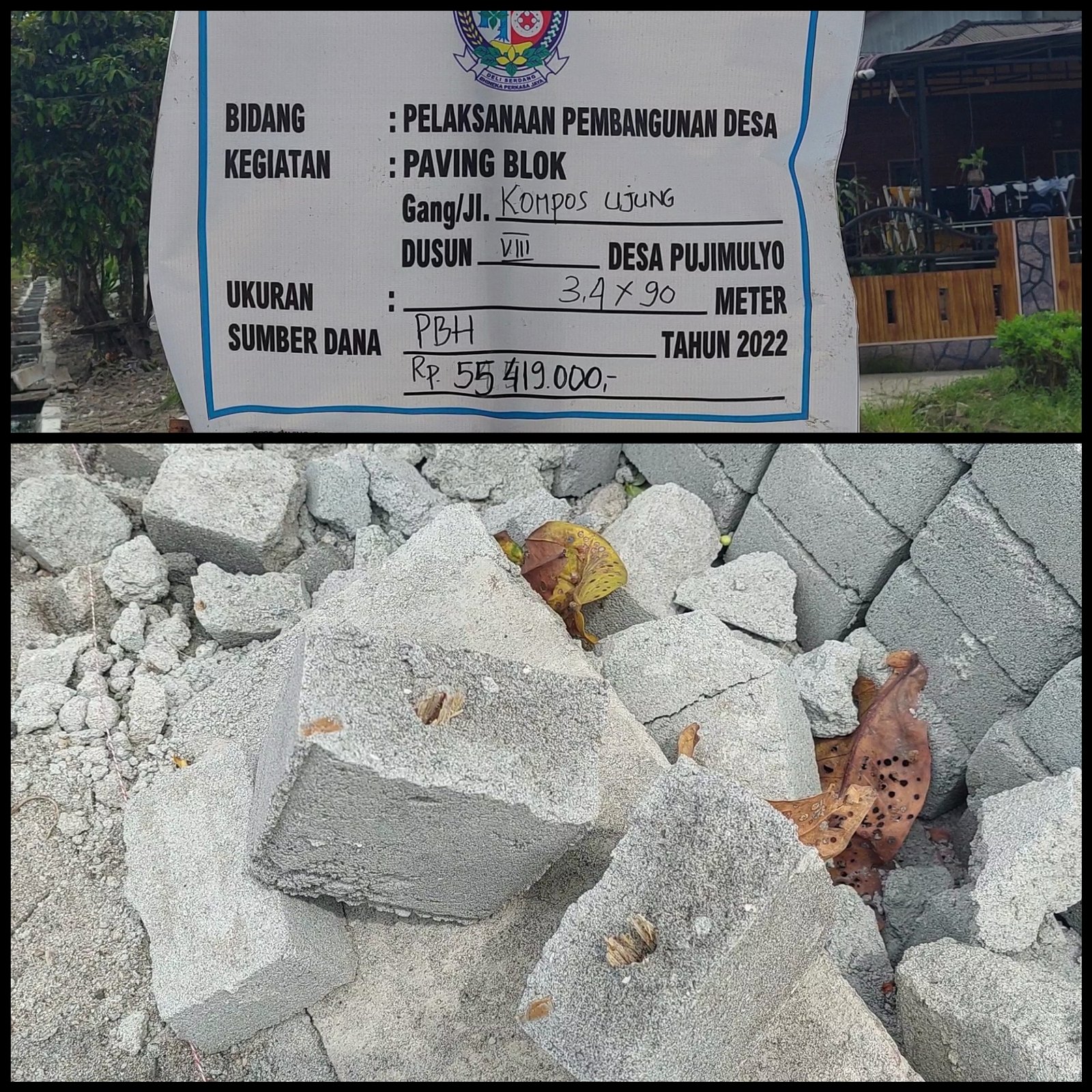 Beberapa hari kemudian kepala Desa pujimulyo dan sekretarisnya meninjau lokasi pembangunan tersebut dan meminta tempo 3-4 hari kepada masyarakat Dusun VIII untuk digantikan batu paving block jenis bata tersebut yang lebih kuat dan bagus.