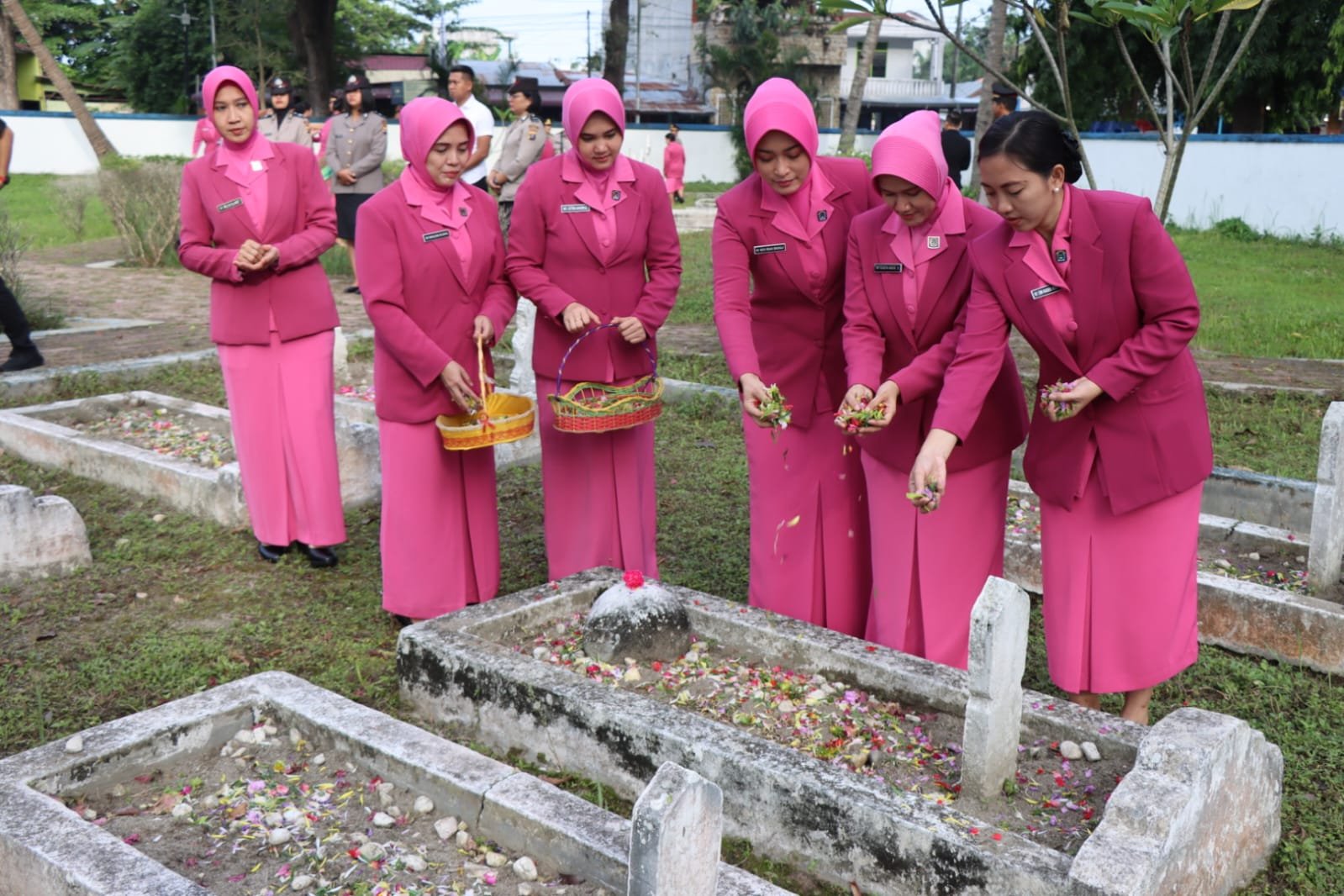 Selanjutnya Kapolresta Deli Serdang didampingi Ketua Bhayangkari Cabang Kota Deli Serdang, dan Pejabat Utama Polresta Deli Serdang, melakukan tabur bunga pada makam pahlawan anggota polri dan kemudian di tutup dengan mendoakan arwah para pahlawan.