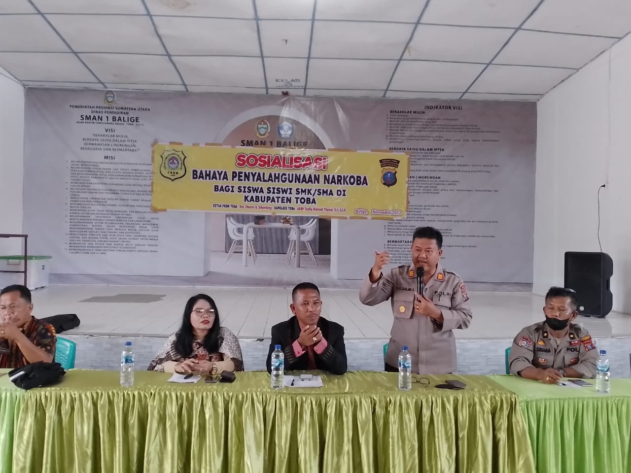 Sosialisasi dan penyuluhan Narkoba kalangan remaja khususnya Pelajar di gagas oleh Forum Kewaspadaan Dini Masyarat Toba (FKDM) berlangsung di Aula SMAN 1 Soposurung Balige Kabupaten Toba Sumatera Utara, Kamis (24/11/2022) sekira pukul 10.00 Wib