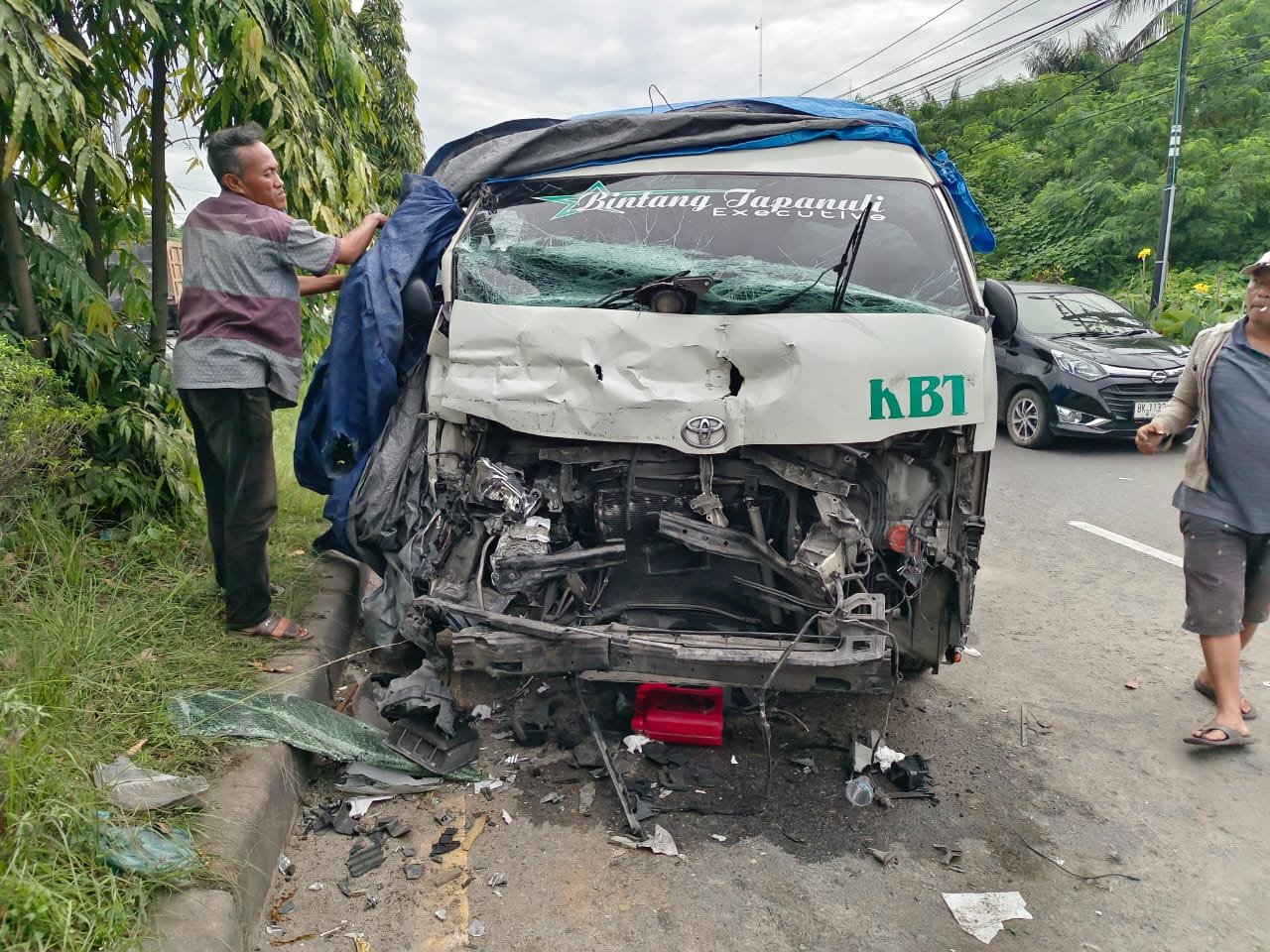 Mobil penumpang KBT Hiace bertulis Bintang Tapanuli Plat BB 7248 BB yang di kemudikan Tolopan Sianipar semula datang dari arah tebing tinggi menuju medan.