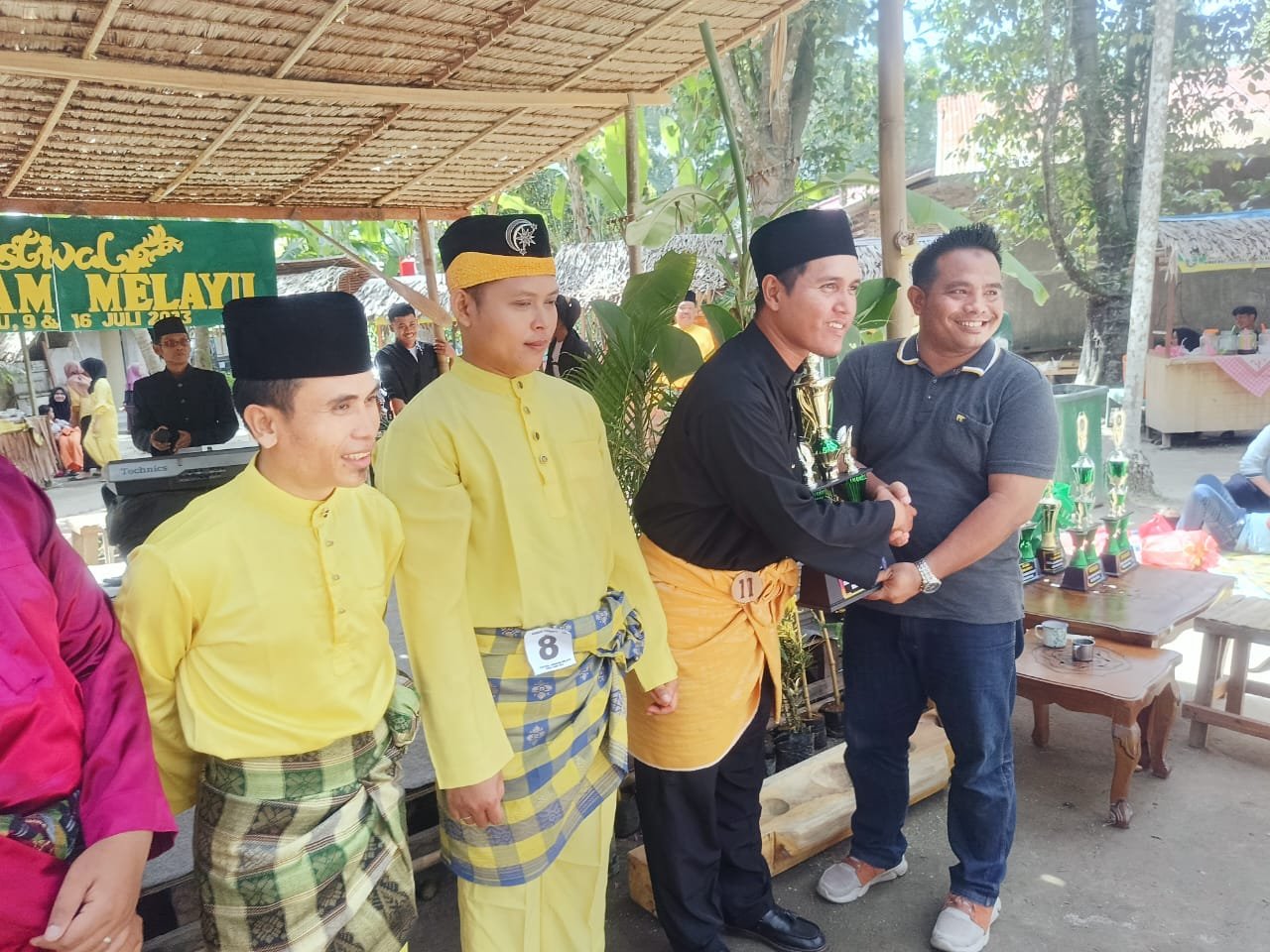 Founder Pasar Kamu H.Dedi Sopyan mengucapkan selamat pada juara Festival Langgam Melayu yang baru pertama kali di adakan di tempat ini.