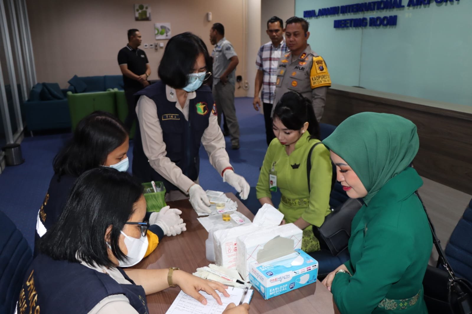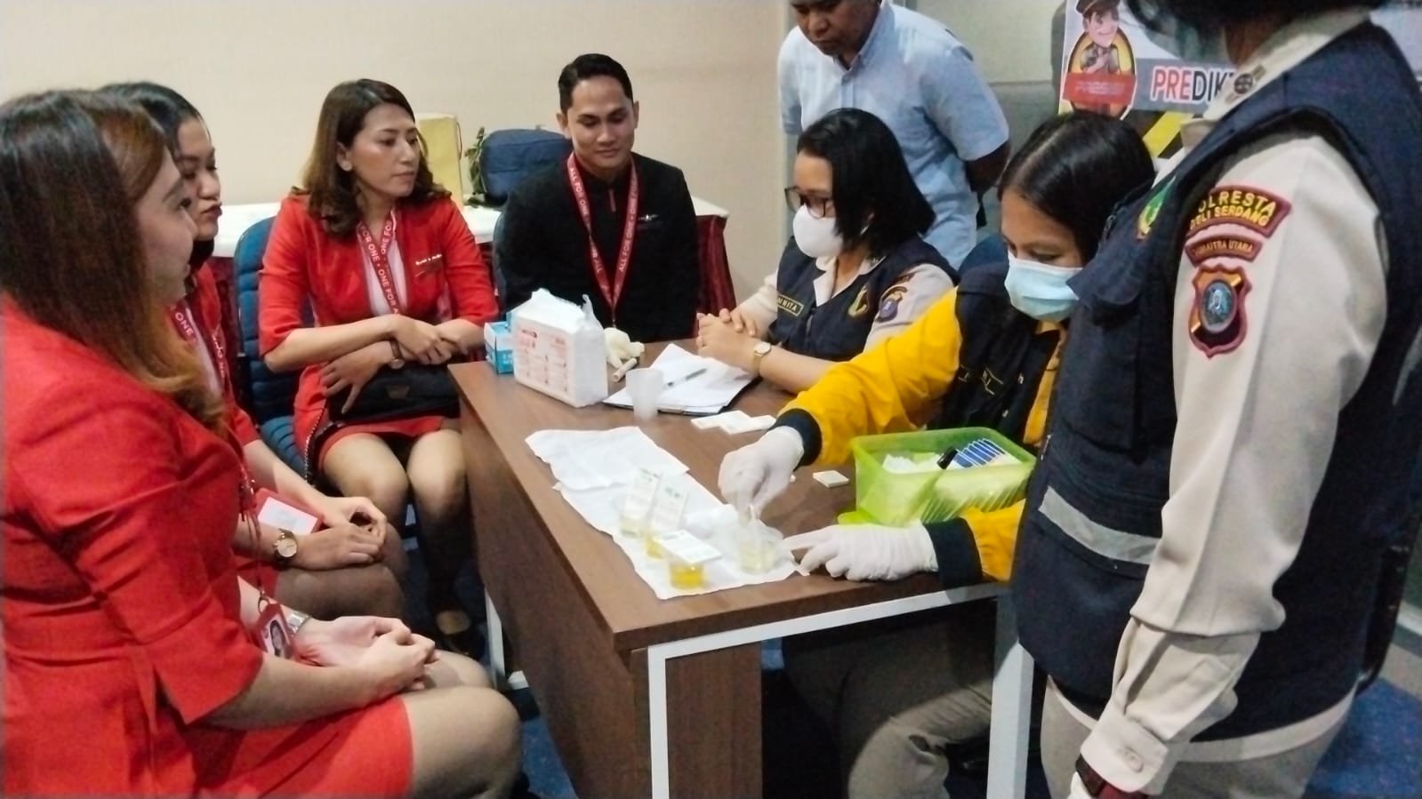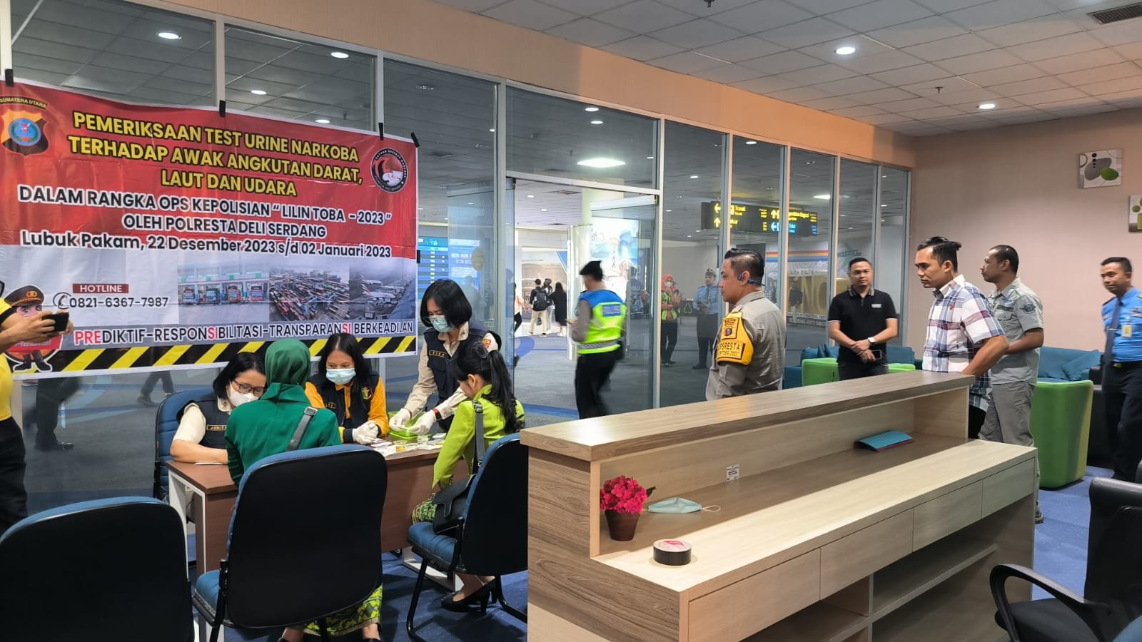 Menghadapi Nataru 2024 dalam rangka kegiatan Operasi Lilin Toba Tahun 2023, Polresta Deli Serdang bekerjasama dengan OIC Bandara Kualanamu , AVSEC Bandara Kualanamu, dan BNN Deli Serdang, menggelar test urine kepada Pilot, Co-pilot, Pramugari maskapai penerbangan dan Masinis Kereta Api Indonesia di Bandara Internasional Kualanamu Deli Serdang, pada Sabtu 30 Desember 2023.