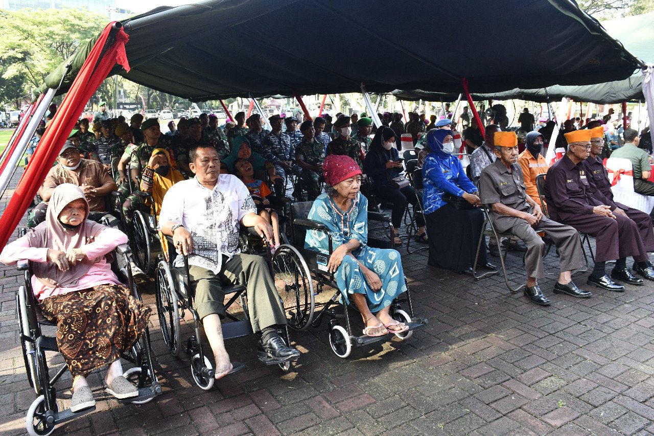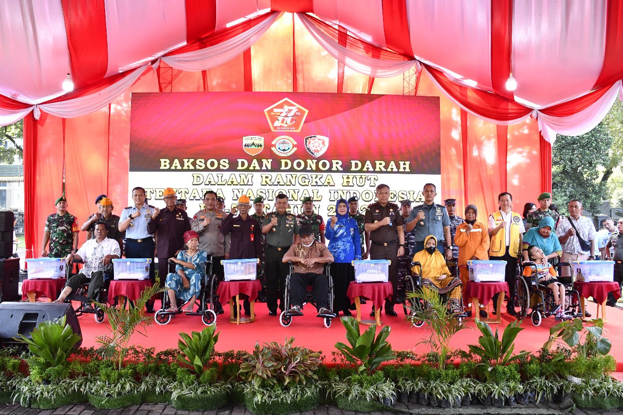 “Dalam kegiatan baksos ini, kita membagikan 300 paket sembako kepada masyarakat kurang mampu, donor darah dengan target 500 kantong, serta pembagian kursi roda kepada penyandang disabilitas,” ucap Pangdam.