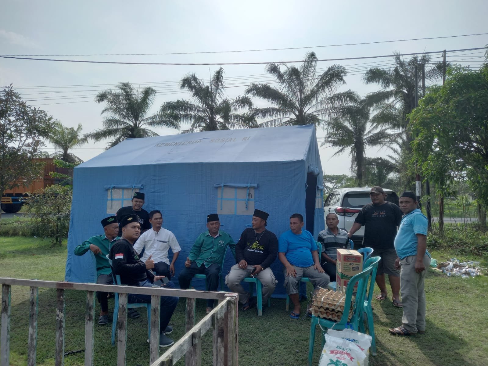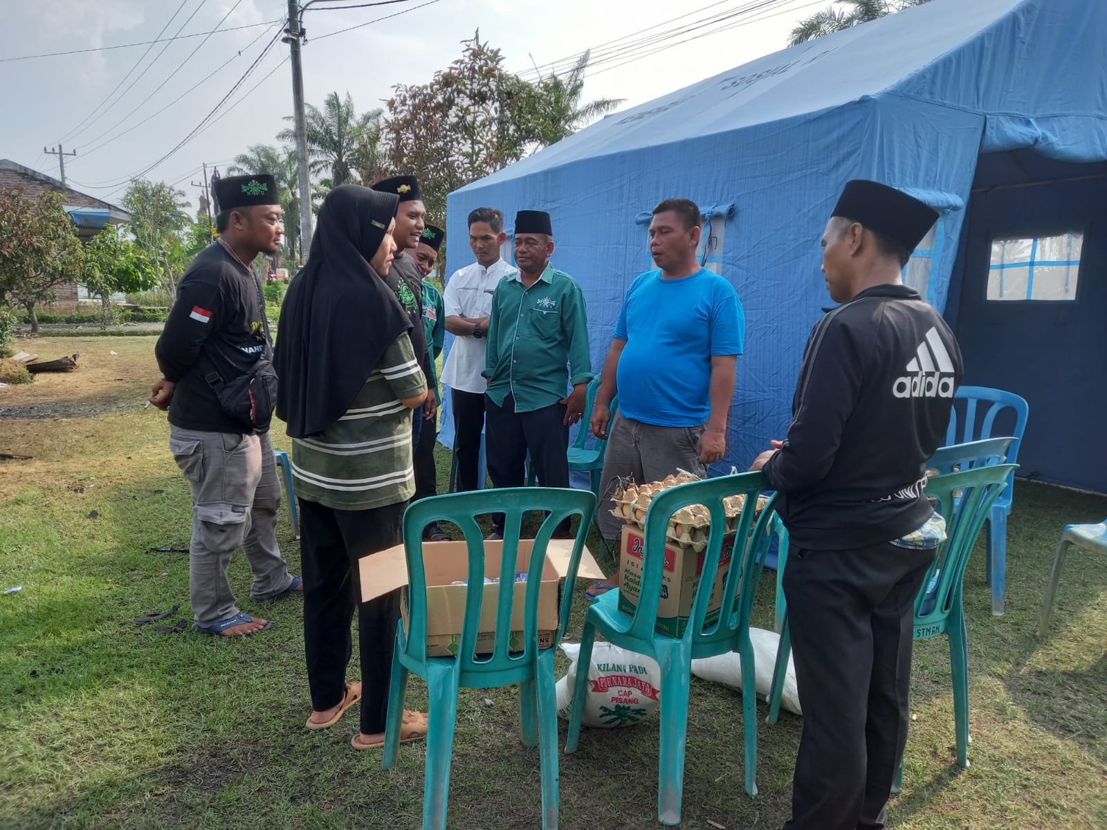 Saat mengunjungi para korban, Ketua ranting NU Kecamatan Pagar Merbau Suroso yang diwakili oleh Bendahara Suyanto, melihat secara langsung kondisi dua unit rumah yang sudah hangus terbakar.