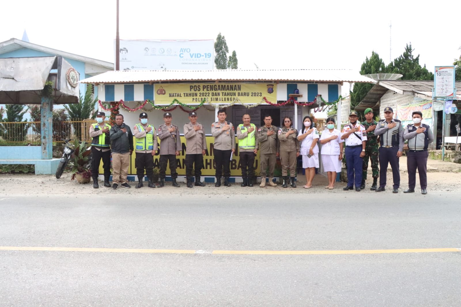 Kapolres Simalungun AKBP Ronald F.C Sipayung, S.H., S.I.K., M.H., melakukan pengecekan kelengkapan Pos Pengamanan (Pam) Pos I Dolok Simpang Dolok Melangir dan Pos Pelayanan SMK 3 Jalur Lintas Sumatera Utara dan Lintas Siantar-Parapat, Pos Pam V Simpang Sampuran, Pos Yan V RM. Mandailing, Pos Yan VI Simpang Palang, Pos Yan VIII Pantai Bebas dan Pos Yan VI Pagoda / Open Stage Parapat. Jum’at (23/12/2022).