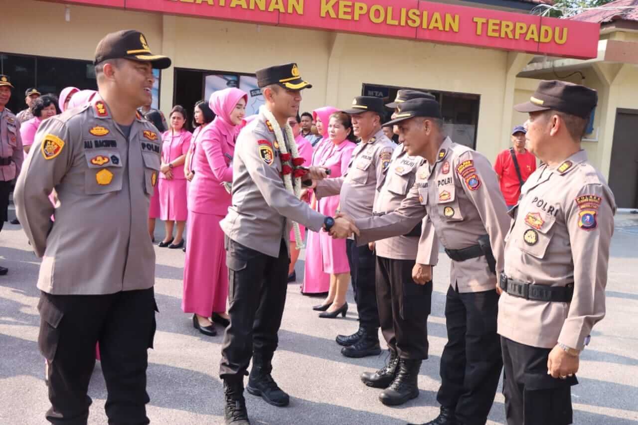 Serah Terima Jabatan (Sertijab) Kepala Kepolisian Resort Serdang Bedagai (Polres Sergai) dengan Pedang pora pisah sambut Kapolres yang lama ke Kapolres yang baru di laksanakan sesuai dengan penuh hikmat dan berjalan dengan baik, Kapolres Sergai yang baru juga disambut dengan pengalungan bunga sebagai tanda selamat datang.