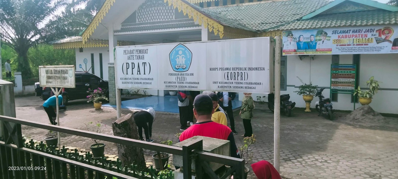 Pelaksanaan kegiatan gotong royong (Gotroy) di Lokasi kantor Tebing Syahbandar  ,Kabupaten Serdang Bedagai Sumatera Utara pada Kamis  05 /01/2023 yang melibatkan sejumlah perangkat di 10 Desa di Kecamatan Tebing Syahbandar  berlangsung sinergi dan Kebersamaan.