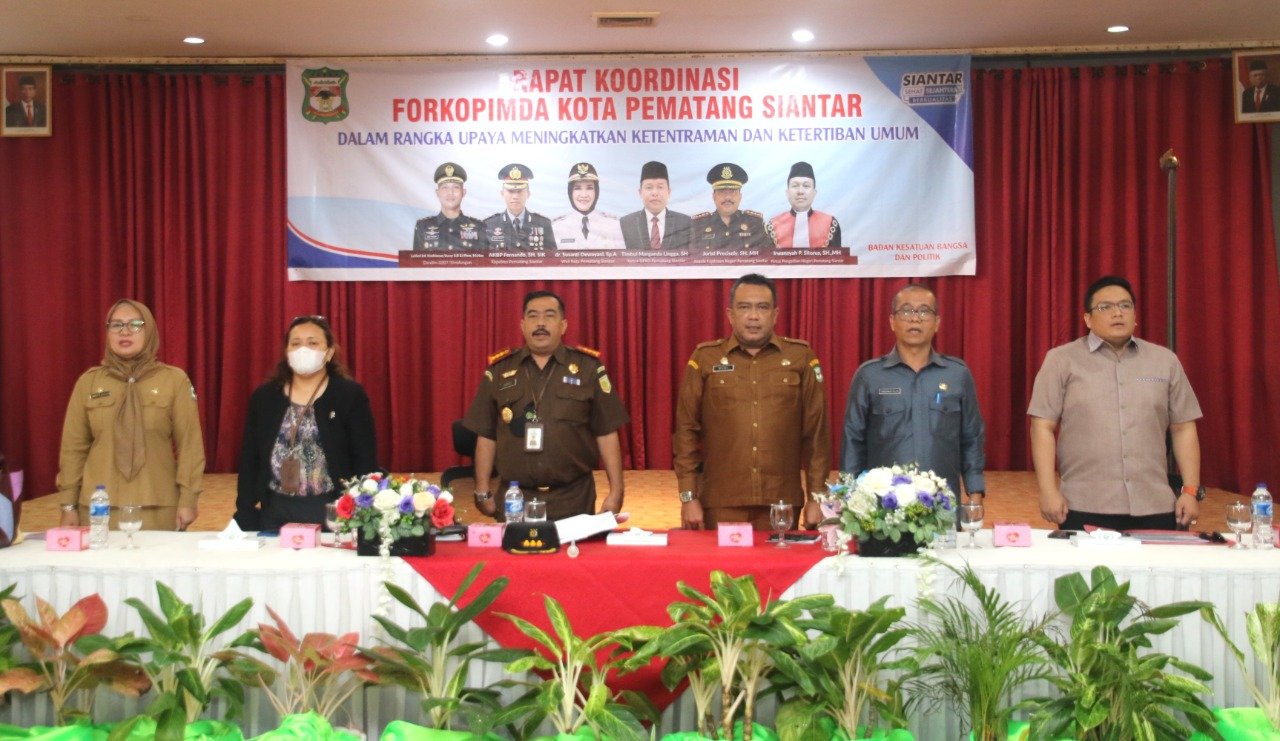 Pemerintah Kota (Pemko) Pematang Siantar bersama Forum Koordinasi Pimpinan Daerah (Forkopimda) menggelar Rapat Koordinasi (Rakor) terkait ketenteraman dan ketertiban umum. Rakor dipimpin Wali Kota Pematang Siantar dr Susanti Dewayani SpA diwakili Sekretaris Daerah (Sekda) Budi Utari Siregar AP, dan berlangsung di