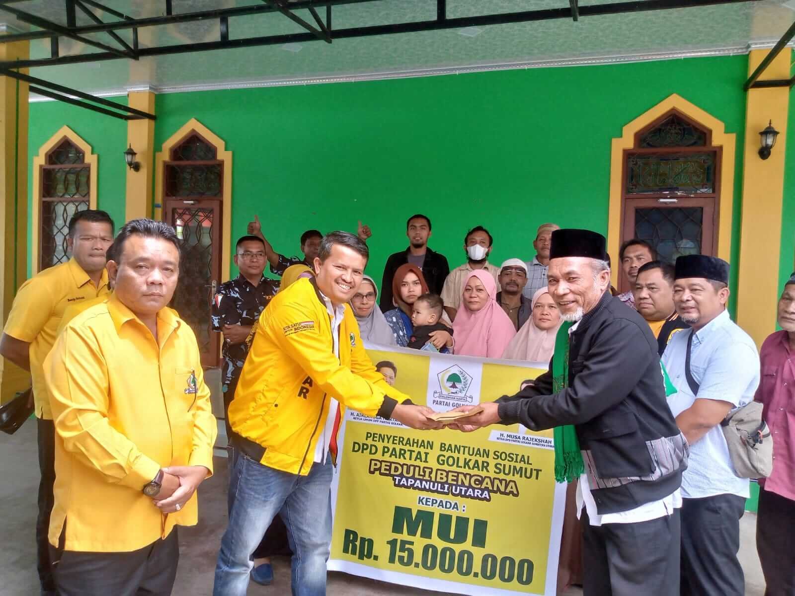 Senada dengan Pendeta Anjar Lumbatobing, Ketua MUI Taput Haji M Marpaung juga menyampaikan terimakasih dan rasa haru atas kepedulian yang dilakukan oleh Partai Golkar Sumut. “Kami mengucapkan terimakasih dan salam hormat kami untuk Bapak Musa Rajekshah yang memang selama ini sudah kami kenal dengan kebaikannya. Semoga Partai Golkar semakin maju dan bermanfaat untuk rakyat,” ujarnya.