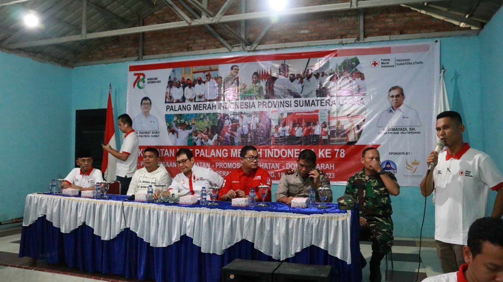 Dalam Rangka memperingati Hari Palang Merah Indonesia (PMI) ke 78 Tahun 2023, PMI Provinsi Sumatera Utara yang bekerjasama dengan PMI Kabupaten Deli Serdang menggelar kegiatan Bakti Sosial berupa pemeriksaan kesehatan, mulai dari kesehatan umum, pemeriksaan mata , pemberian kaca mata, pemeriksaan kesehatan gigi, donor darah, edukasi PHBS dan penyerahan alat poging untuk antisipasi DBD, Jum’at (15/9/2023).