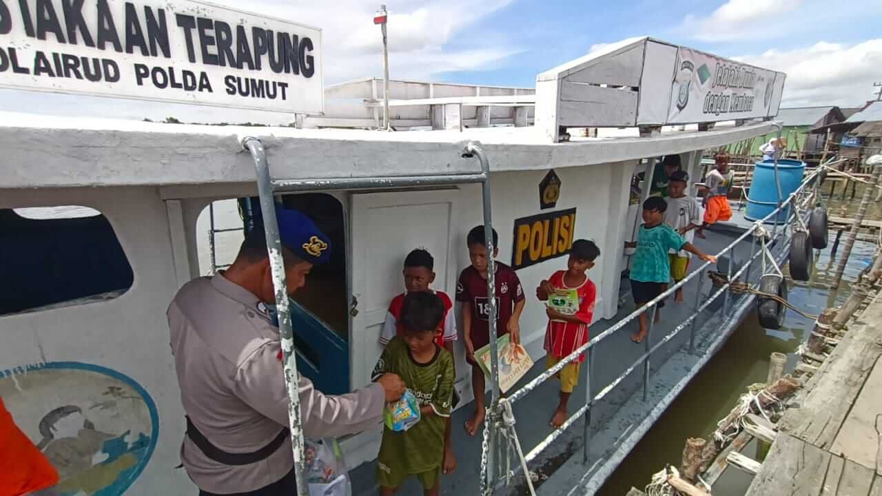 Untuk mencerdaskan anak bangsa sekaligus menambah ilmu dan memperluas wawasan, Direktorat PolAirud Polda Sumatera Utara sediakan perpustakaan terapung, Senin (7/11/22)
