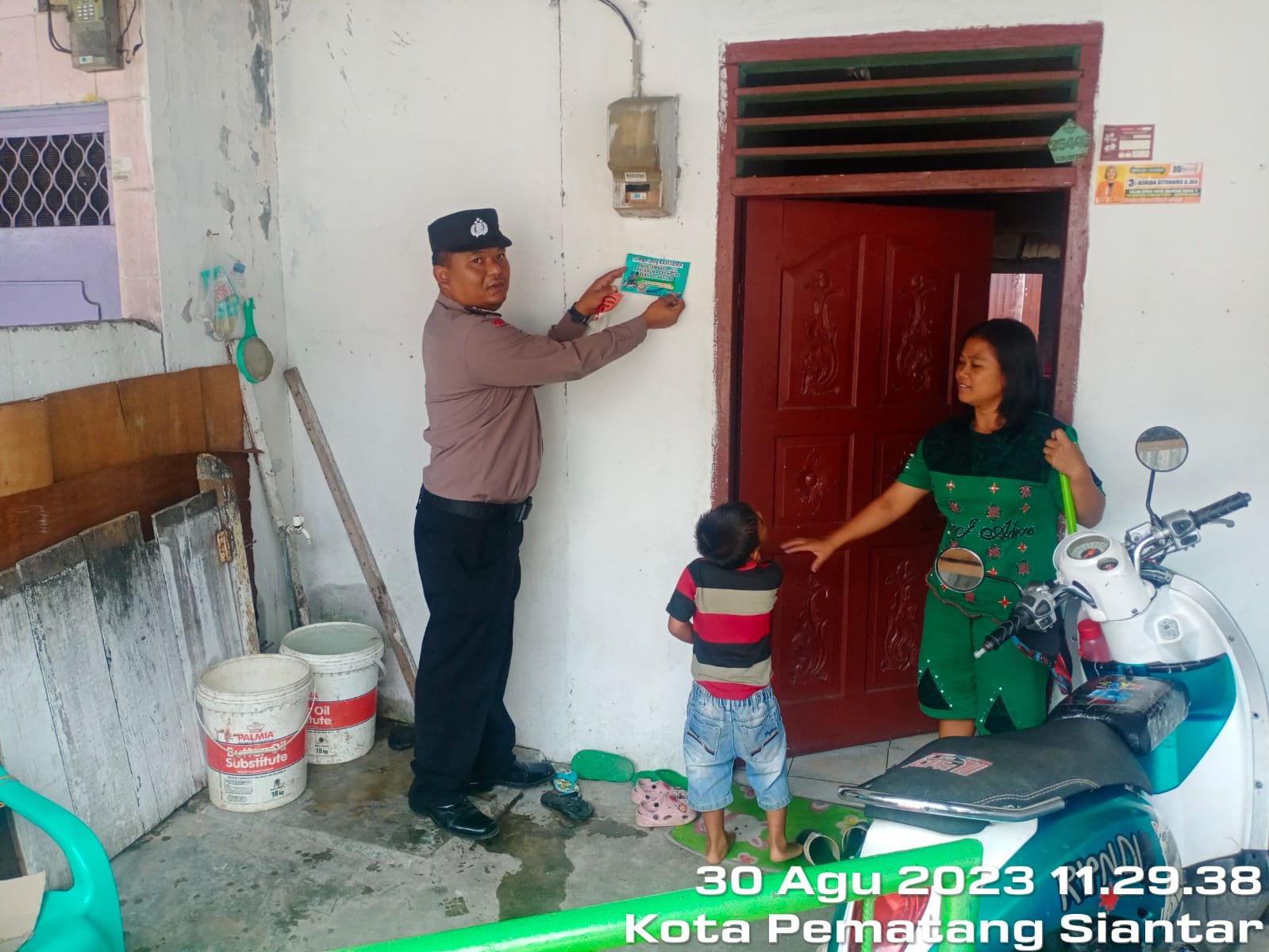 Didorong Rasa peduli terhadap warganya,Personil Polsek Siantar Barat sambangi rumah masyarakat untuk menempelkan Stiker dan memberikan Layanan informasi kepada masyarakat, Rabu 30 Agustus 2023