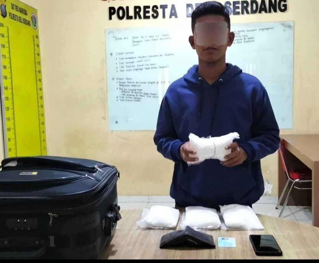 Personil Sat Res Narkoba Polresta Deli Serdang amankan seorang tersangka yang membawa Narkoba jenis Sabu.