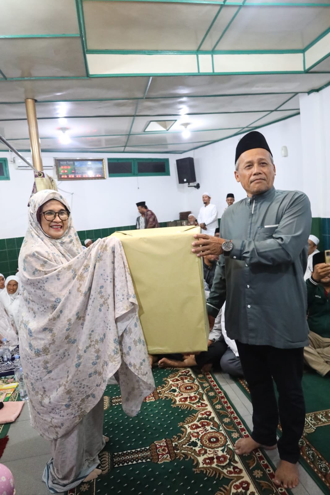 Selain kepada pengurus BKM, dalam Safari Ramadhan di Masjid Taqwa, dr Susanti juga memberikan bingkisan kepada anak-anak.