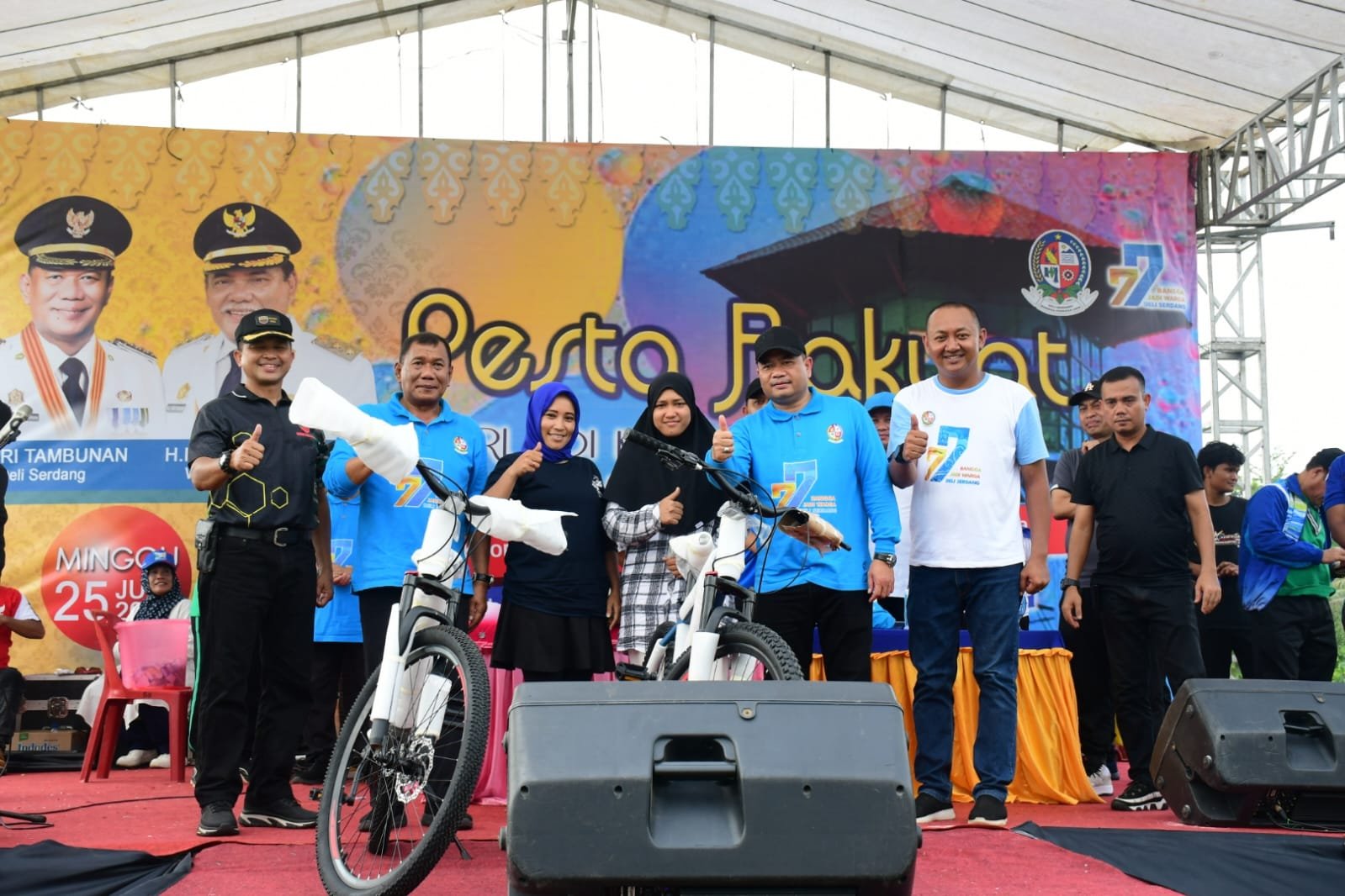 Pelaksanaan Pesta Rakyat yang diadakan Pemerintah Kecamatan Tanjung Morawa di Lapangan Sepakbola, Jalan Harapan Desa Bangun Sari Baru, Kecamatan Tanjung Morawa, Kabupaten Deli Serdang, berlangsung semarak, Minggu (25/6/2023).