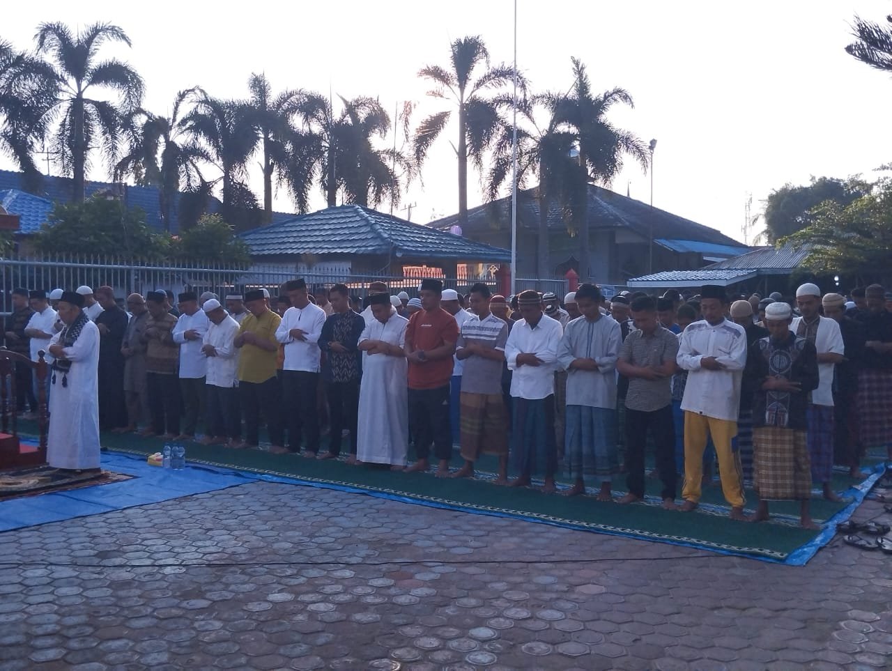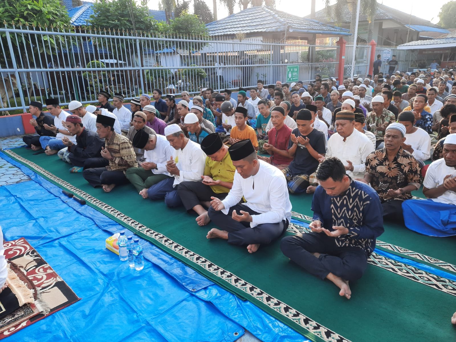Petugas dan Warga Binaan Laksanakan Sholat Idul Adha Berjamaah di Lapangan Apel Lapas Kelas IIB Tebing Tinggi.