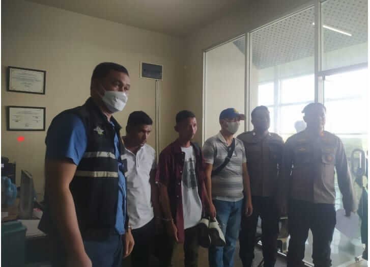 Setelah proses pemeriksaan dan serah terima di Gedung Avsec Bandara Kualanamu, kedua calon penumpang yang gagal berangkat ini akhirnya diboyong ke Mapolda Sumut untuk Pengembangan. (Surya)