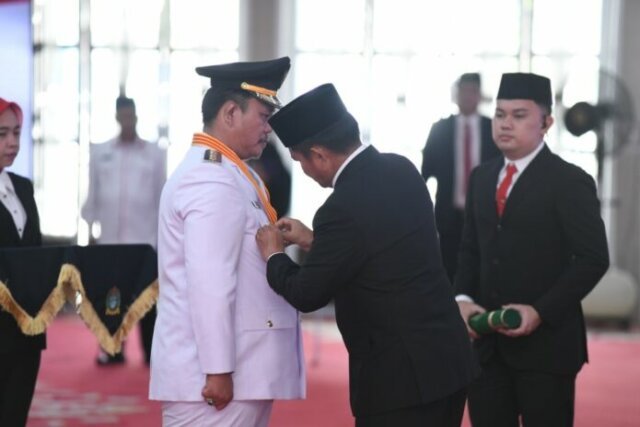 Medan (5/2/2024). Penjabat Gubernur Sumatera Utara Hassanudin resmi melantik Sowa’a Laoli, SE, M.Si sebagai Wali Kota Gunungsitoli menyelesaikan masa jabatan hasil pemilihan Kepala Daerah serentak tahun 2024, di Aula Tengku Rizal Nurdin (Kompleks Rumdis Gubsu) Jl. Jenderal Sudirman No. 41 Medan, Senin (5/2/2024).
