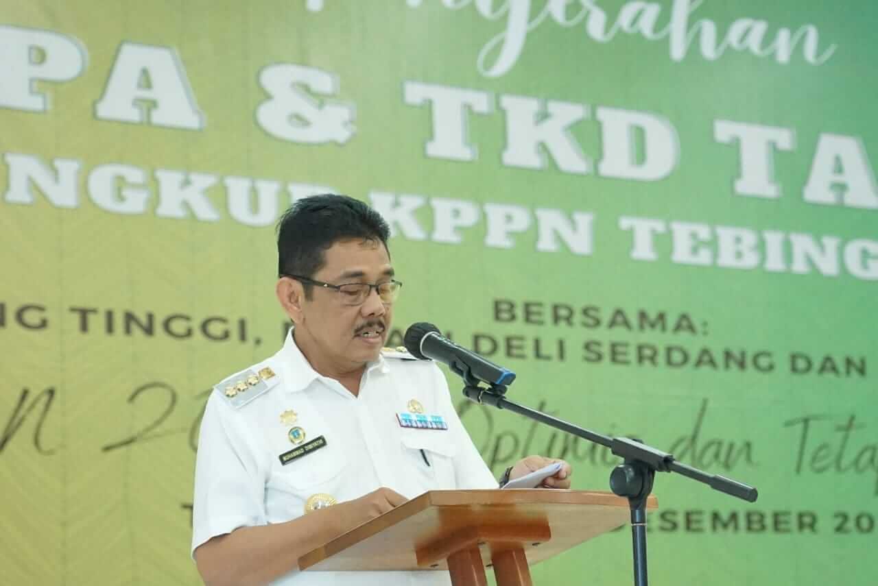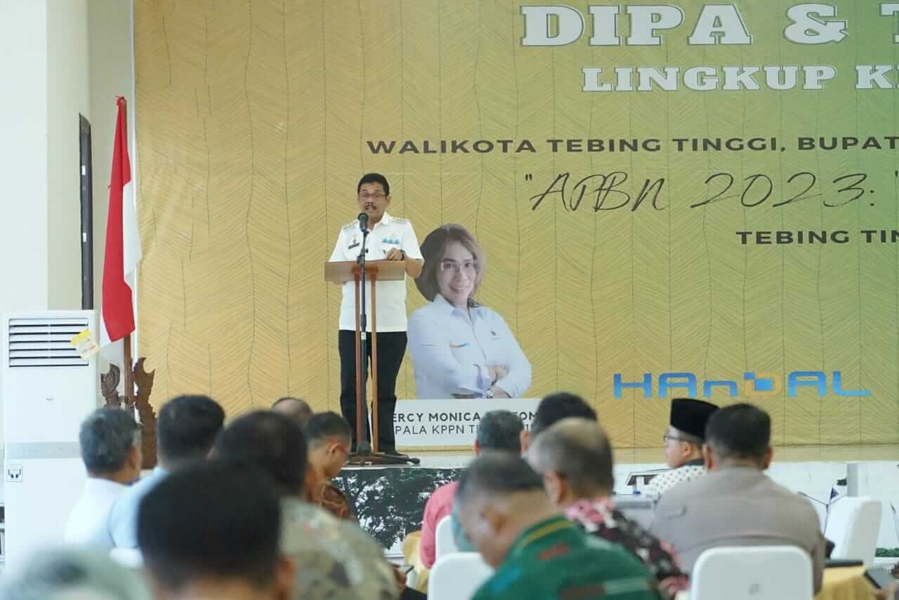 Hal ini disampaikan Pj Wali Kota Tebing Tinggi Muhammad Dimiyathi saat Penyerahan DIPA (Daftar Isian Pelaksanaan Anggaran) dan TKD (Transfer Ke Daerah) Tahun Anggaran (TA) 2023, oleh KPPN (Kantor Pelayanan Perbendaharaan Negara) Kota Tebingtinggi kepada Pemko Tebingtinggi, Rabu (7/12/2022), di gedung Balai Kartini Convention Center and Public Services, Jalan Gunung Leuser BP7.
