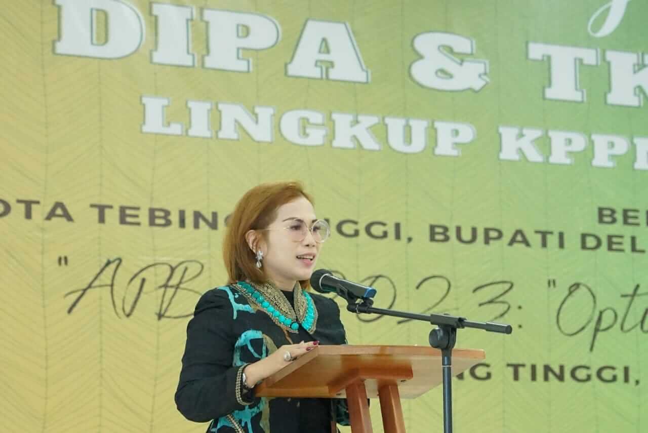 Kepala KPPN Tebing Tinggi Mercy Monica berharap kepada peserta yang hadir, agar handal, subjektifitas dan terjalin keserasian serta dapat menjadi booster penyemangat.