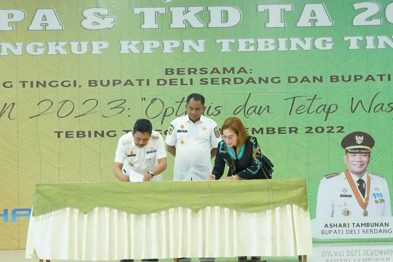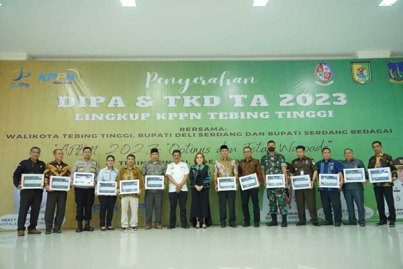 Dalam acara tersebut, penyerahan DIPA dan TKD Tahun Anggaran 2023 oleh KPPN Kota Tebingtinggi, selain ke Pemko Tebing Tinggi, juga turut dilakukan penyerahan ke Pemkab Serdang Bedagai, dihadiri langsung Bupati Sedang Bedagai H. Darma wijaya dan Kabupaten Deli serdang dalam hal ini Bupati Deli Serdang berhalangan hadir sehingga diiwakilkan.