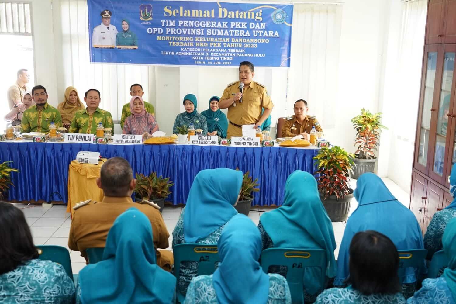 Selepas silaturahmi dan kunjungan di rumah dinas, Pj. Wali Kota Tebing Tinggi dan Ketua TP PKK Sumatera Utara serta Ketua TP PKK Tebing Tinggi dan rombongan melakukan kunjungan monitoring tertib administrasi di Kelurahan Bandar Sono dan monitoring Hatinya PKK di Kelurahan Tambangan.