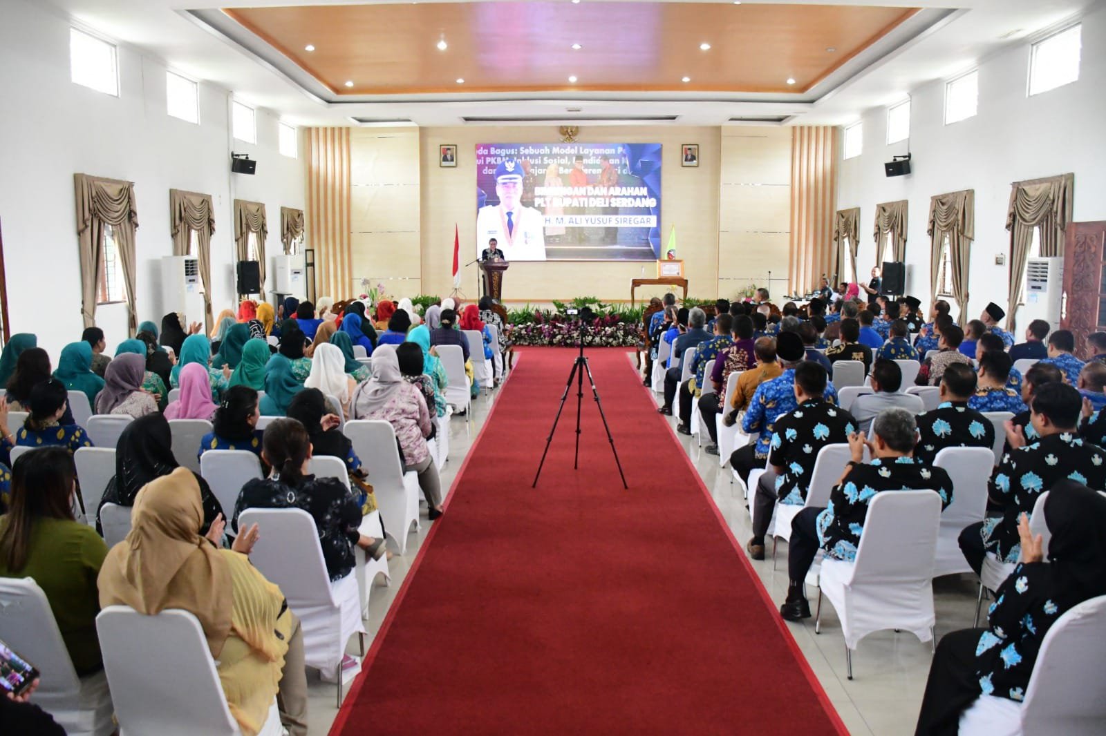 Pelaksana Tugas (Plt) Bupati Deli Serdang, HM Ali Yusuf Siregar memberi apresiasi atas raihan Penghargaan Inovasi Pelayanan Publik Top 45 “Demi Sepeda Bagus” Tahun 2023 di Aula Cendana, Lantai II, Kantor Bupati Deli Serdang, Kamis (23/11/2023).