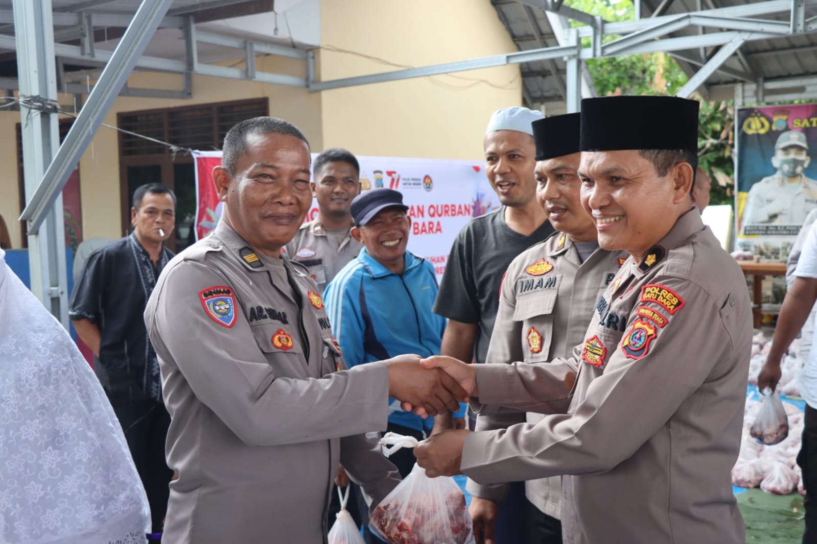 “Penyerahan daging Qurban kepada Purnawirawan, Personil Polres Batu Bara, masyarakat, Wartawan secara simbolis,”ucap Rudi.