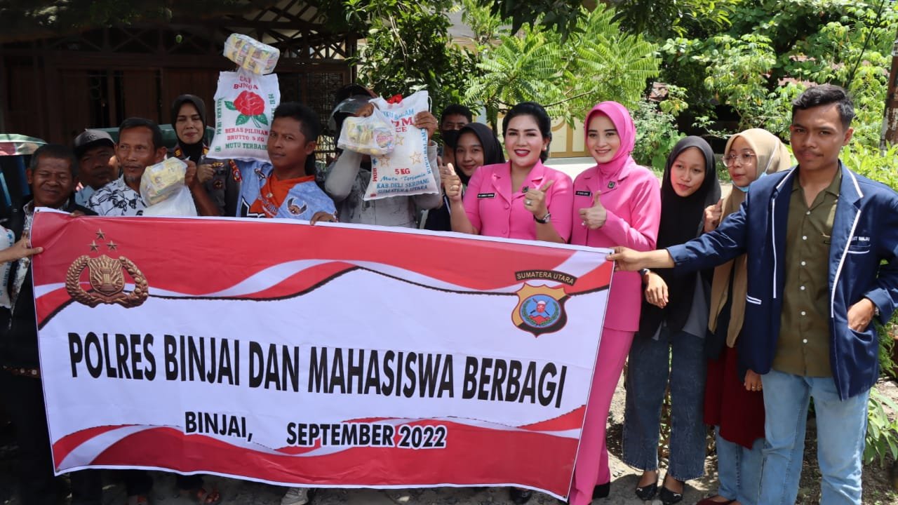 Polres Binjai dengan tema “Polres Binjai dan Mahasiswa Berbagi” melaksanakan bakti sosial (baksos) kepada masyarakat pra-sejahtera dan terdampak kenaikan harga BBM siang ini Rabu, 21 September 2022.