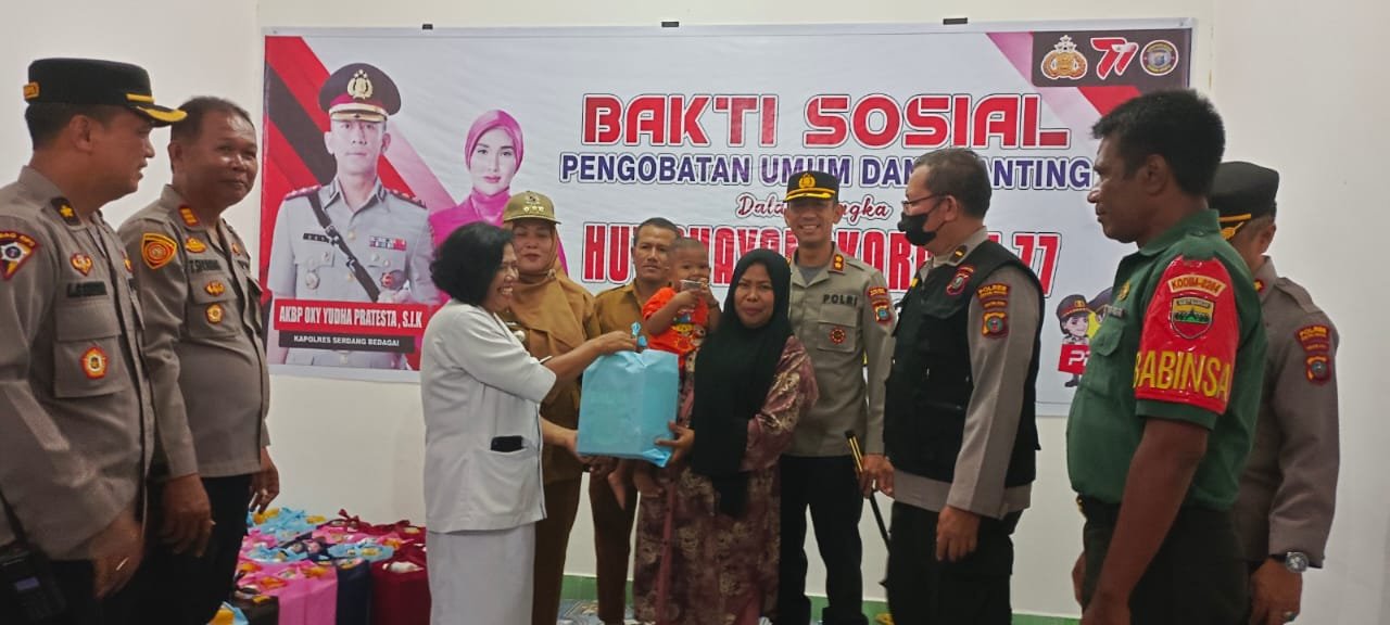 Dalam HUT Bhayangkara ke 77 di Wilkum Polres Serdang Bedagai saat ini, kegiatan pelayanan kesehatan kepada masyarakat dapat menjadi motivasi kesehatan yang nanti kedepannya dapat terjalin silaturahmi antara Polri yang Presisi dan seluruh Masyarakat di Kab. Serdang Bedagai. (Erick Yoma)