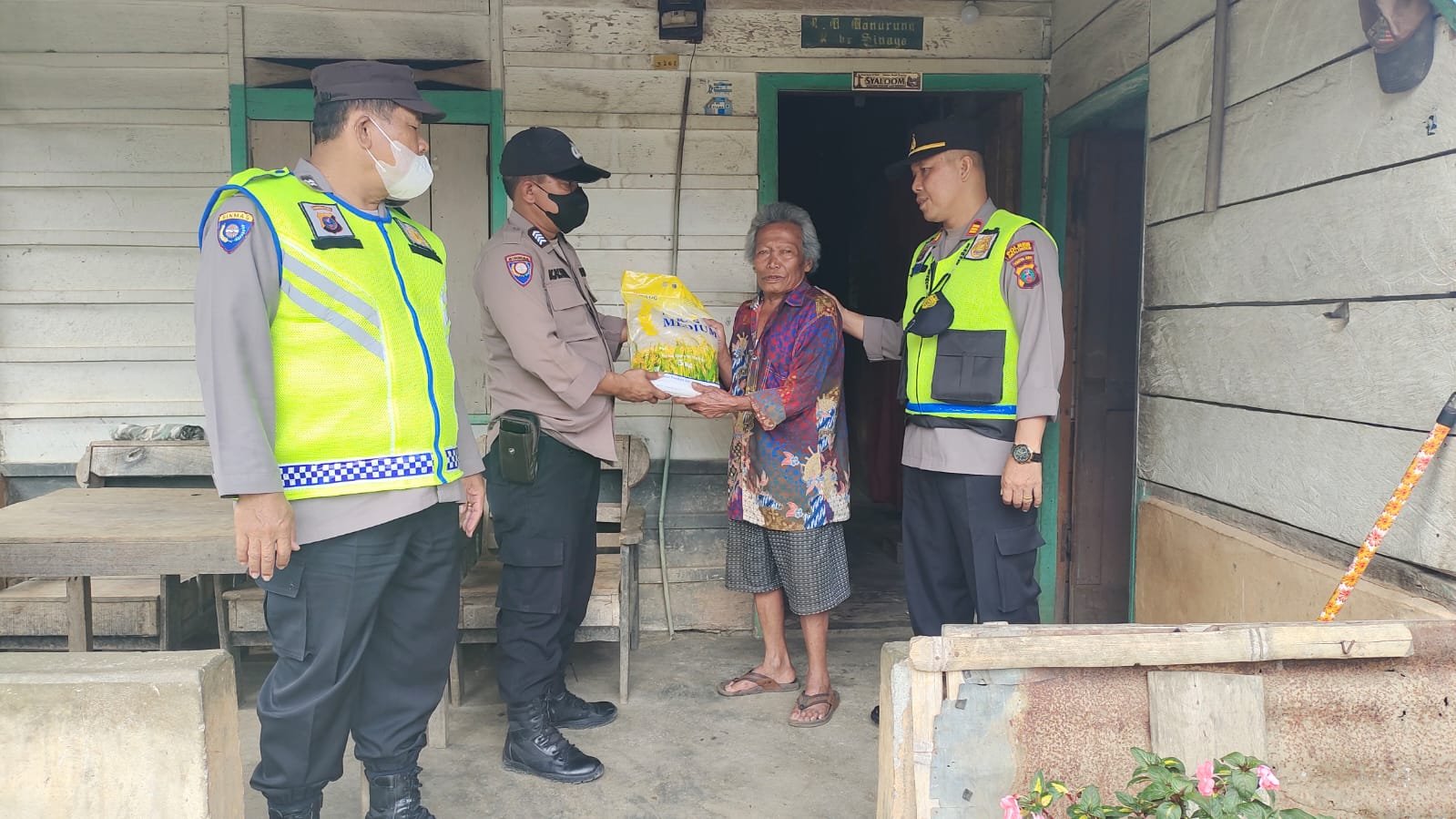 Kapolsek Parapat Resort Simalungun AKP Jonni Silalahi, SH bersama Kanit Binmas Aiptu L.Naibaho beserta anggota Bhabinkamtibmas menyalurkan bantuan sosial berupa sembako beras dalam rangka meringankan beban warga yang terdampak kenaikkan harga BBM.