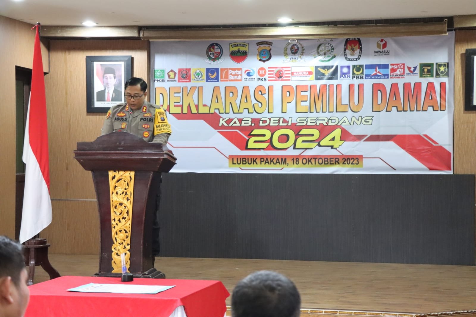 Dalam deklarasi Pemilu Damai 2023-2024 ini, Kapolresta Deli Serdang melalui Waka Polresta Deli Serdang menyampaikan harapannya bahwa kegiatan ini akan menjadi momen penting untuk memperkuat komitmen bersama antara penyelenggara Pemilu dan partai politik dalam menciptakan Pemilu yang aman dan damai.