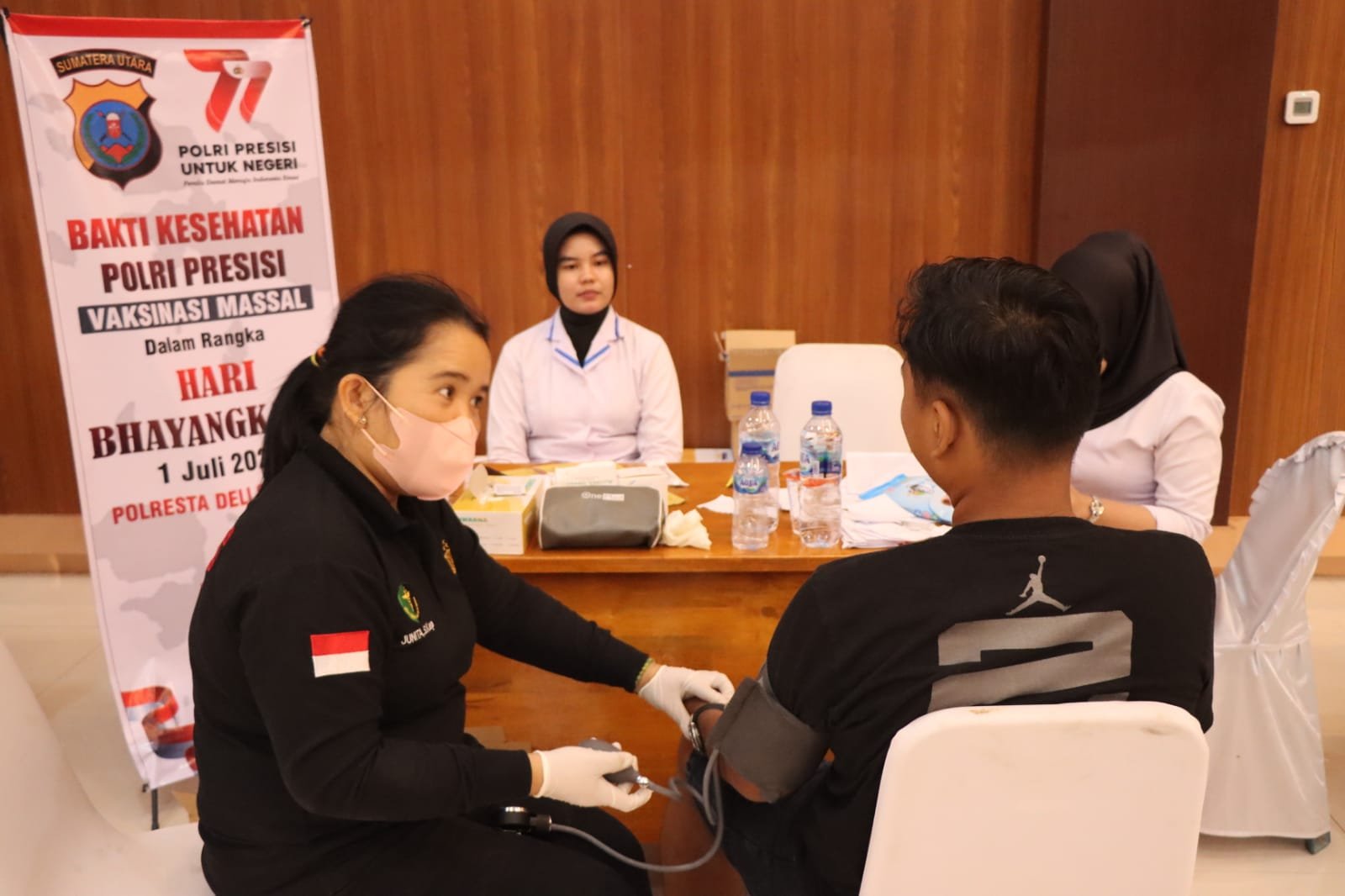Kegiatan acara hari ini melibatkan Dinas kesehatan Deli Serdang, Sie Dokkes Polresta Deli Serdang, PUSKESAD, RSUD Drs. H. Amri Tambunan, RS Grandmed dan RS Mutiara untuk menyukseskan pelaksanaan bhakti sosial khitanan  dan Vaksinasi massal dalam rangka menyambut HUT Bhayangkara ke-77 tersebut.