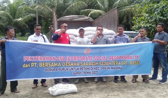 PT.Bersama Oesaha Saragih Sejahtera (BOSS) yang berada di Silau Kahean Simalungun pada hari Jumat tanggal 19 Mei 2023 menyerahkan bantuan pupuk untuk 6 ,Desa di Kecamatan Dolok Masihol Kabupaten Serdang Bedagai,Sumut,
