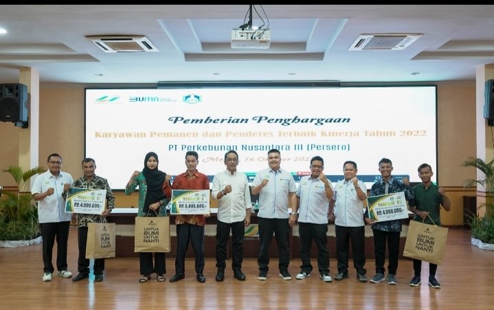 Penghargaan ini ,akan secara terus-menerus kita berikan sebagai bentuk penghargaan kita atas kinerja untuk memberikan kontribusi terbaik bagi PTPN III (Persero) ini”, ujar Rinel.
