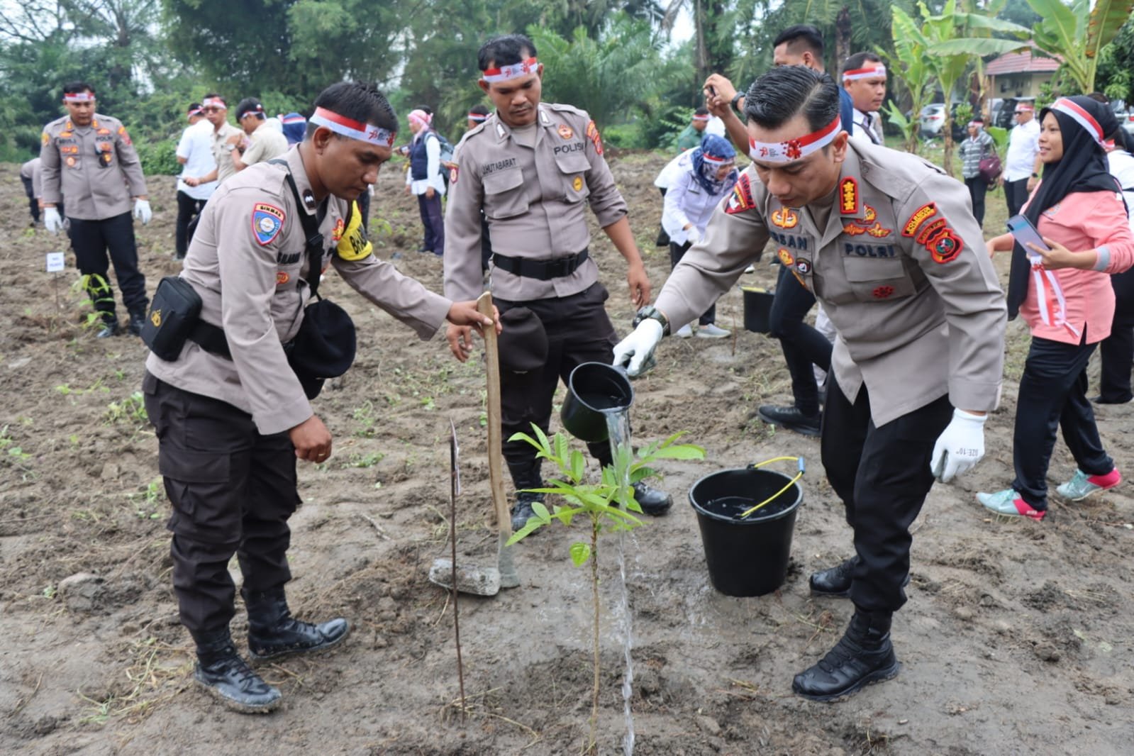 Untuk Jajaran Polresta Deli Serdang melaksanakan penanaman sejumlah 2.400 pohon yang diawali oleh Kapolresta Deli Serdang Kombes Pol Irsan Sinuhaji, SIK, MH, bersama Ketua Bhayangkari Cabang Kota Deli Serdang Ny. Novi Irsan Sinuhaji.di halaman belakang Mapolsek Pagar Merbau Polresta Deli Serdang, Rabu (23/8/2023),