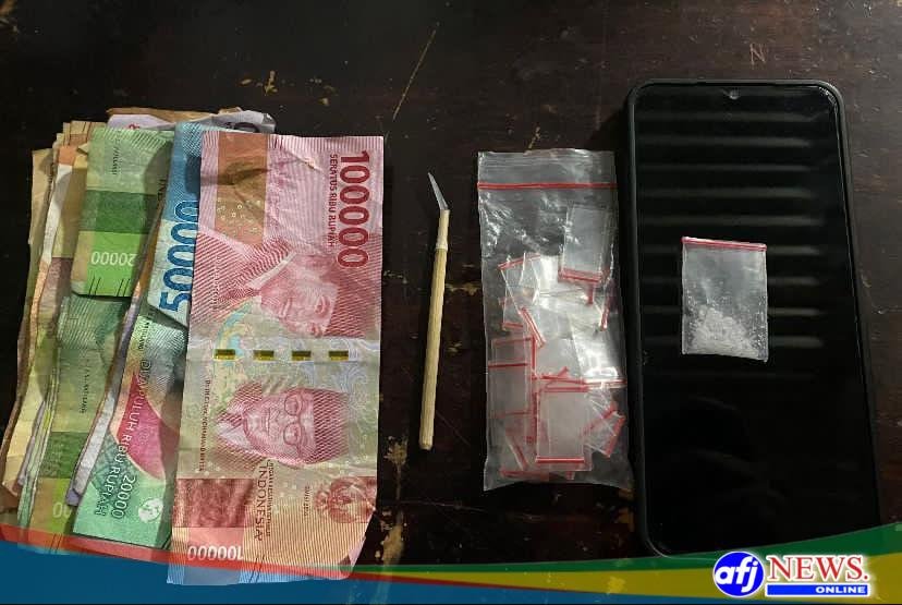 Pada saat penangkapan, Sat Narkoba berhasil menyita sejumlah barang bukti yang diduga terkait dengan aktivitas penyalahgunaan narkoba. Barang bukti yang diamankan antara lain 2 plastik klip yang diduga berisi narkotika jenis sabu dengan total berat 1.05 gram bruto, 1 bungkus plastik klip kosong, 1 buah pipet yang ujungnya runcing, 1 unit ponsel merek Vivo warna biru, dan uang tunai sebesar Rp. 365.000,- yang diduga hasil penjualan narkotika.