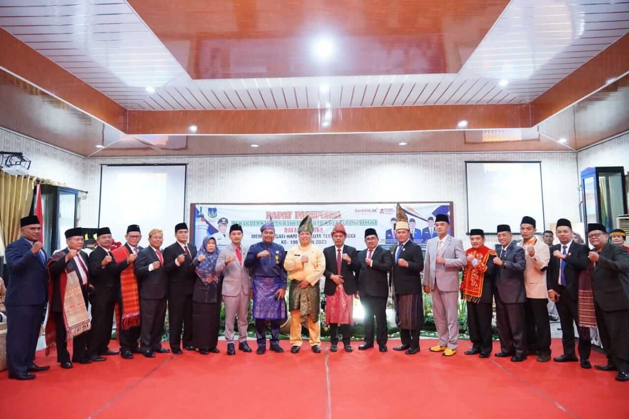 Dalam Sidang Paripurna yang dipimpin Ketua DPRD Kota Tebing Tinggi Basyaruddin Nasution, S.H. dan Wakil Ketua I H.M. Azwar, S.Si, M.M., Wakil Ketua II Iman Irdian Saragi, S.E. ini dihadiri Kadis Ketenagakerjaan Provinsi Sumut Ir. Abdul Haris Lubis, M.Si. mewakili Gubernur Sumatera Utara, Penjabat (Pj.) Wali Kota Tebing Tinggi Drs. Syarmadani, M.Si. dan Pj. Sekdako H. Kamlan Mursyid, S.H., M.M.
