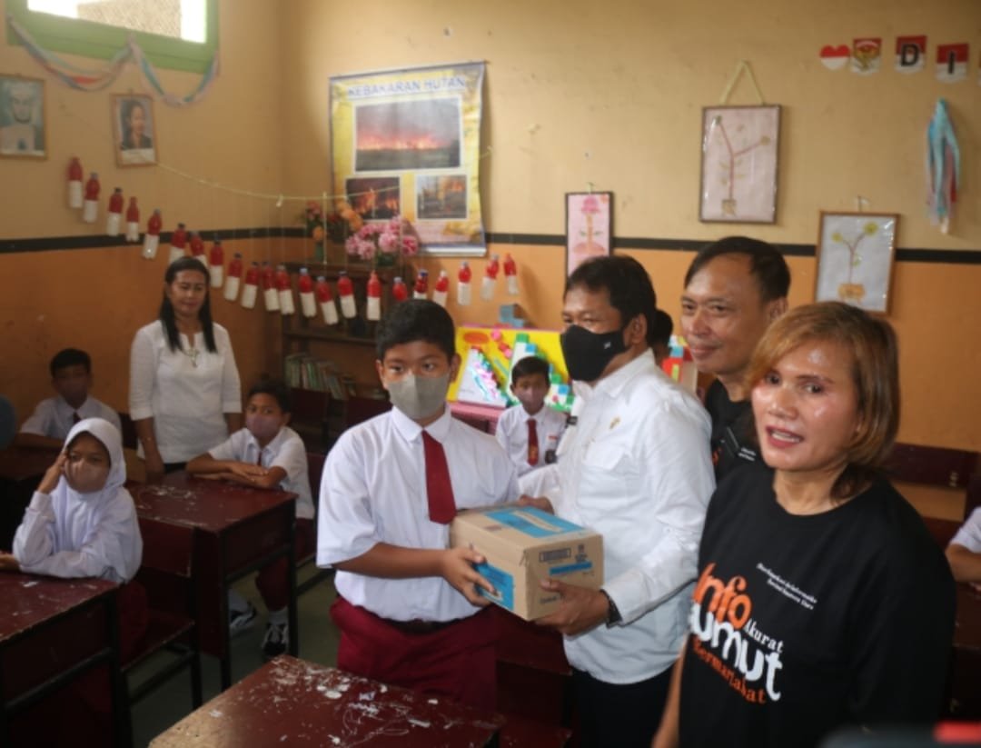 Kegiatan pertama, sekitar pukul 09.30 WIB, berkunjung ke SD Negeri 122337 Jalan H Adam Malik Kecamatan Siantar Barat Kota Pematang Siantar. Di sekolah tersebut, Forum Wartawan Provsu memberikan sosialisasi Pola Hidup Sehat; penyerahan bantuan buku, serta pemberian susu.