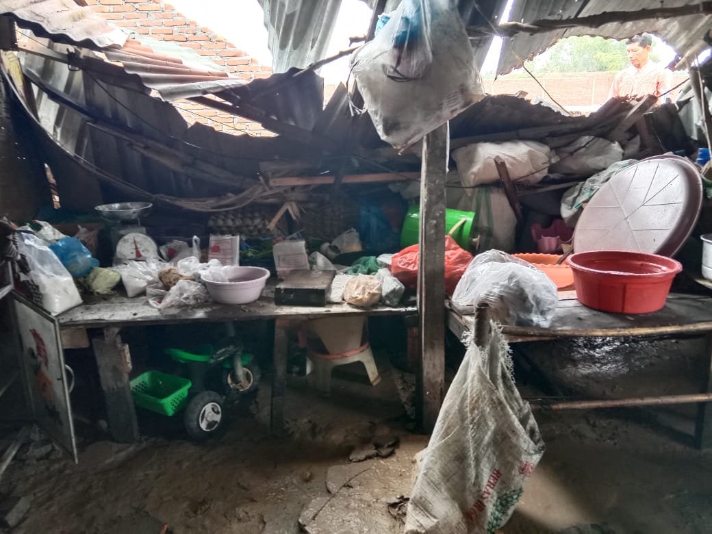 “Kejadian nya tadi malam bang sekitar pukul 19.00 Wib dan menimpa dapur belakang yang berbatasan dengan tembok itu dan menimpa sepeda motor dan peralatan alat masak karena kami berjualan makanan”, tutur nya.