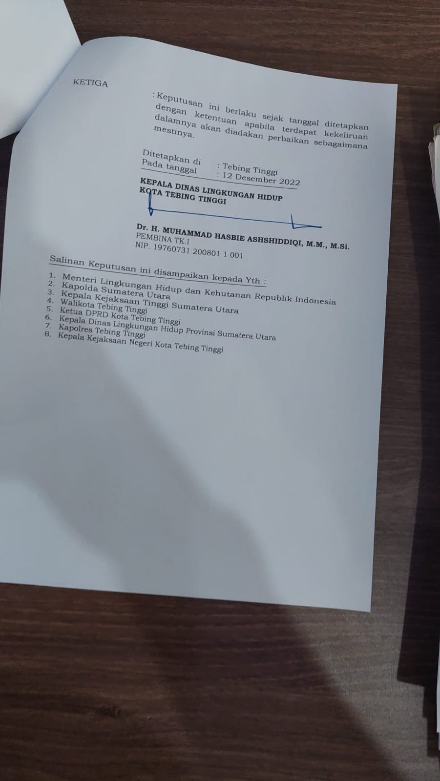 Hal itu di sampaikan Kabid Dinas Lingkungan hidup , Kepada tim gnewstv.id Pada hari ini,Senin 12/Des/2022 di ruang kerjanya yang beralamat di Jl Gunung Bromo Kota Tebingtinggi Sumatera Utara.