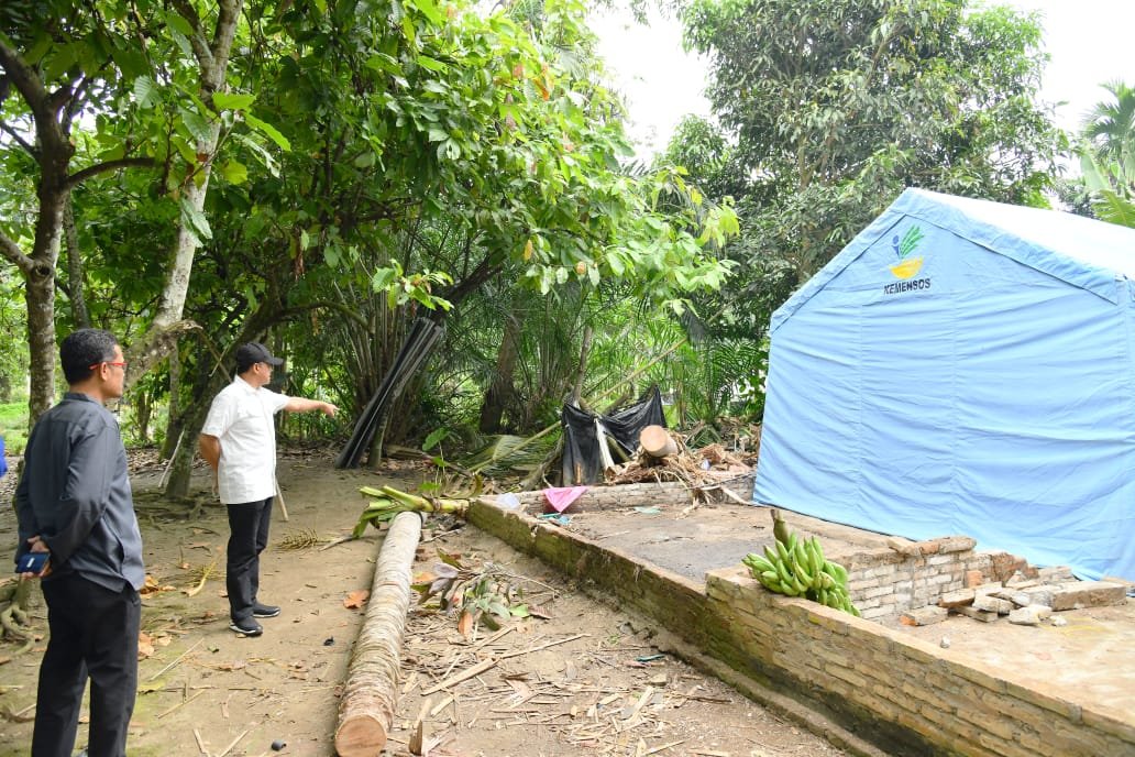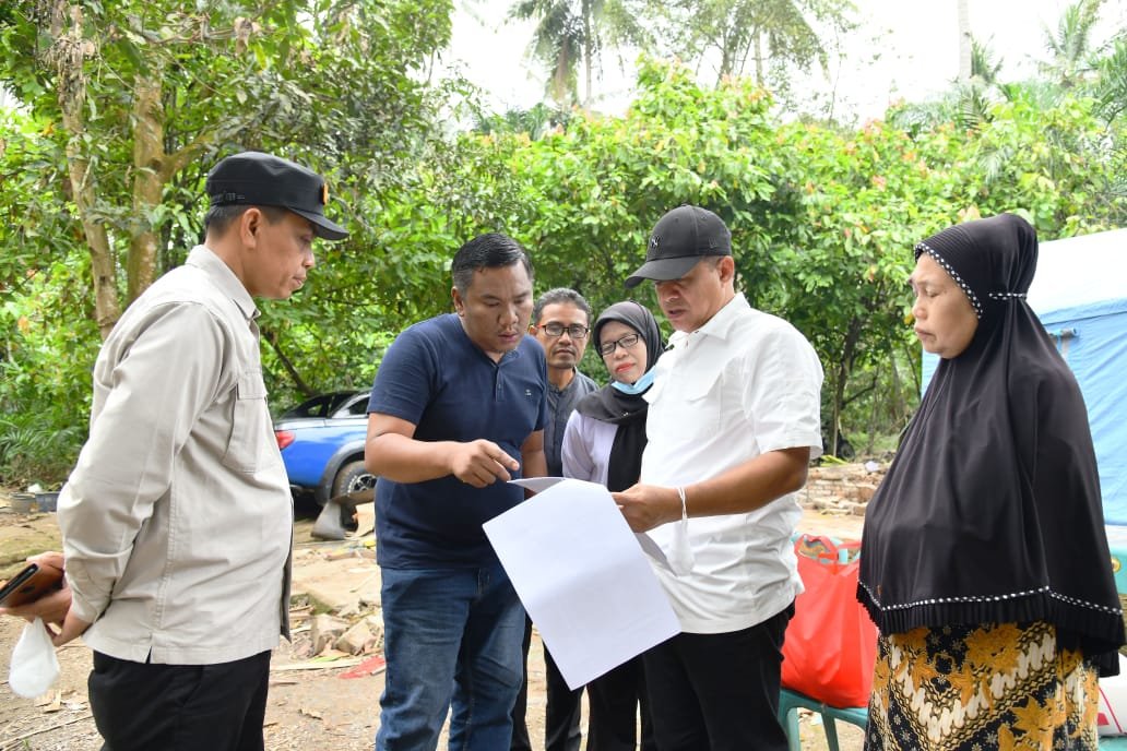 Bupati Batu Bara Ir,H Zahir,M.AP bersama Ketua DPRD Kabupaten Batu Bara M.Safi’i mengunjungi dan merenovasi rumah Fitrawati yang roboh akibat tertimpa Pohon kelapa, di Desa Lubuk Cuik, Kecamatan Lima Puluh Pesisir, Kabupaten Batu Bara, Sabtu (25/03/2023).