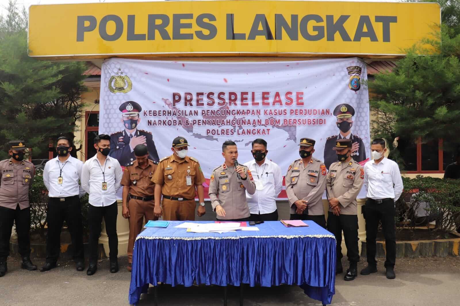 Kapolres Langkat telah dilaksanakan giat Press Release Pengungkapan Kasus Perjudian, Narkoba dan Penyalahgunaan BBM Bersubsisi bertempat di depan Lapangan Jananuraga Polres Langkat. Senin tanggal 05 September 2022 sekira pukul 10.30 wib
